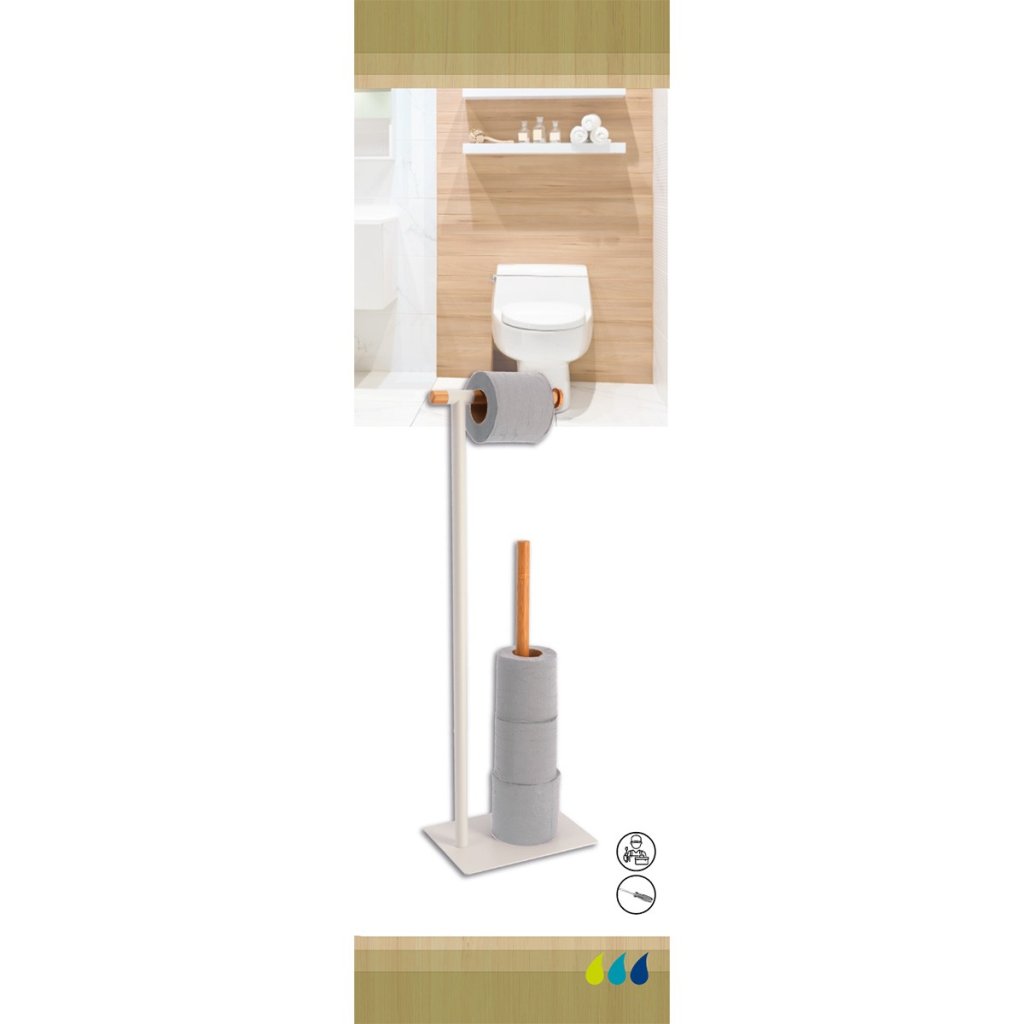 Stojan na toaletní papír White Bamboo, bílá/s dřevěnými prvky