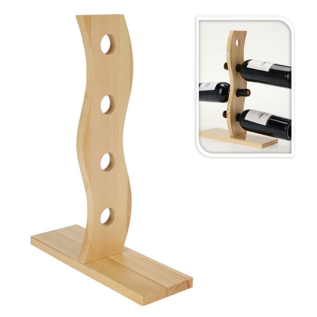 Praktický a originálně vypadající stojan na víno, vyrobený z masivního borového dřeva, který je nejen funkčním, ale také dekorativním doplňkem interiéru. Stojan má originální tvar, díky kterému se stane poutavou dekorací. Stabilita stojanu umožňuje bezpečné uložení až čtyř lahví vína. Vyrobeno z borovicového dřeva zajišťuje trvanlivost stojanu a odolnost proti poškození.Doplňkové parametry