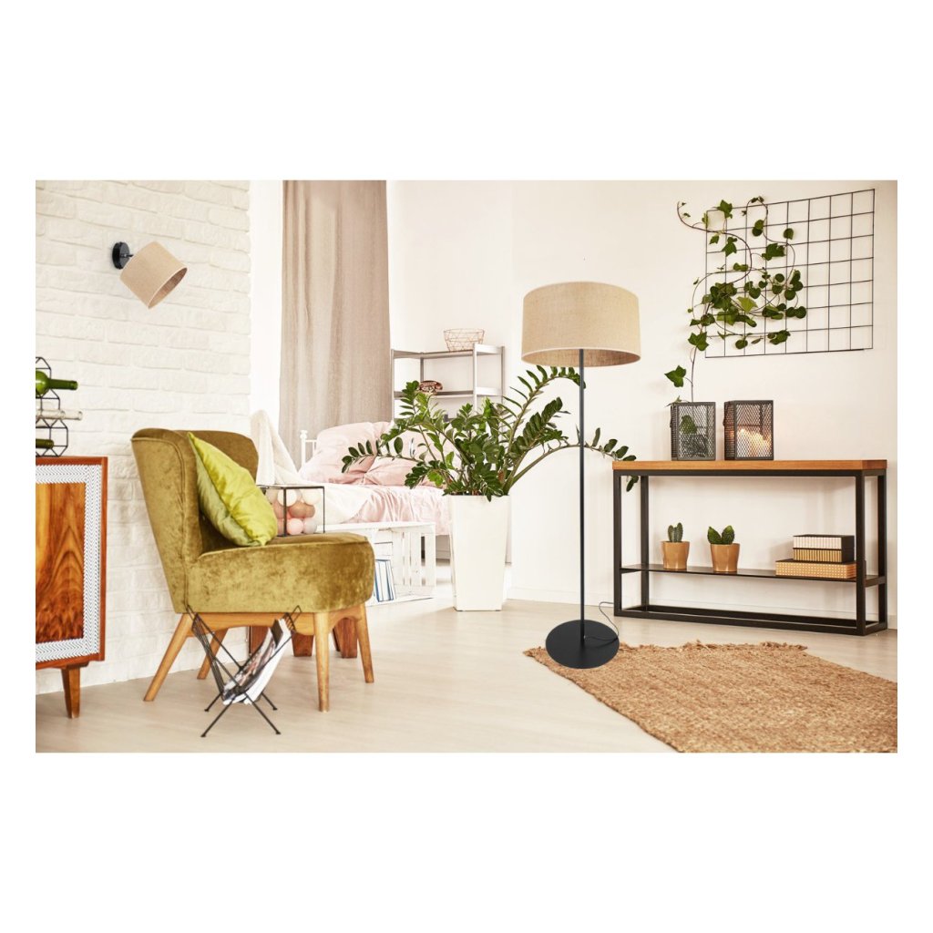 Stojící lampa Juta, 1x jutové stínítko, (výběr ze 3 barev konstrukce), (fi 40cm), o
