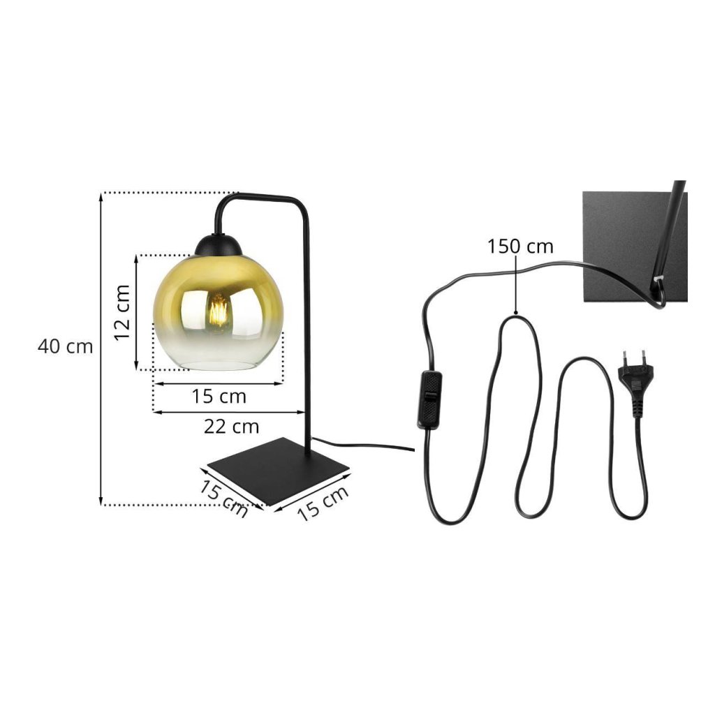 Stolní lampa Bergen Gold, 1x zlaté/transaprentní skleněné stínítko (fi 15cm)