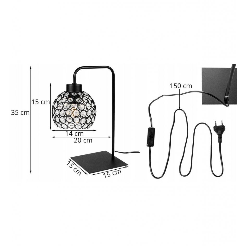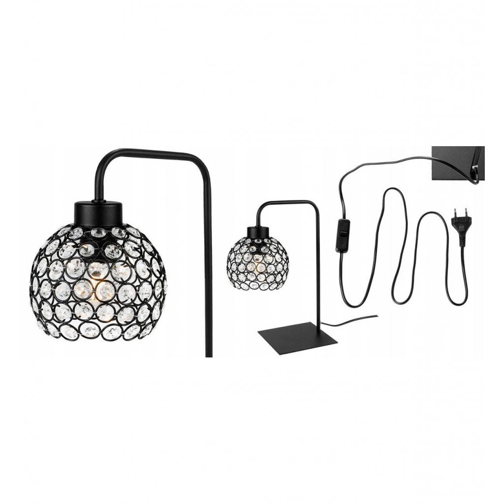 Stolní lampa Crystal, 1x černé křišťálové stínítko