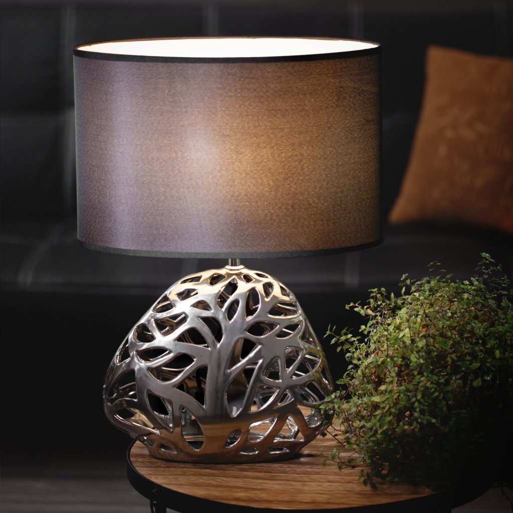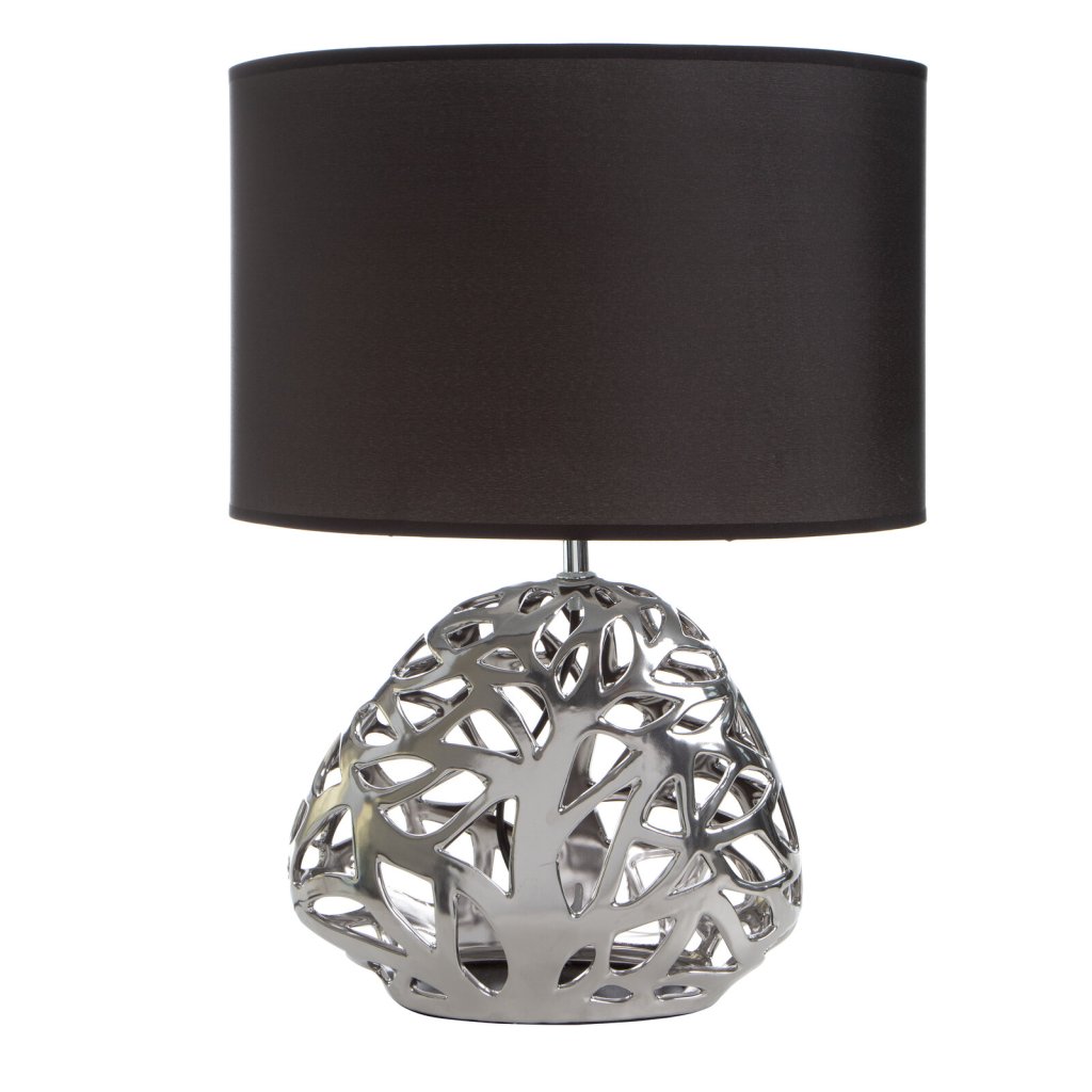 Dekorativní, stojací lampa, se sametovým stínidlem, šířka: 37 cm, délka: 19 cm, barva: stříbrná / černá, složení: keramická hlína, napájení: CE 220-240V 50Hz, žárovka: 1 x E27 MAX 60W, energetická třída: A-GDoplňkové parametry