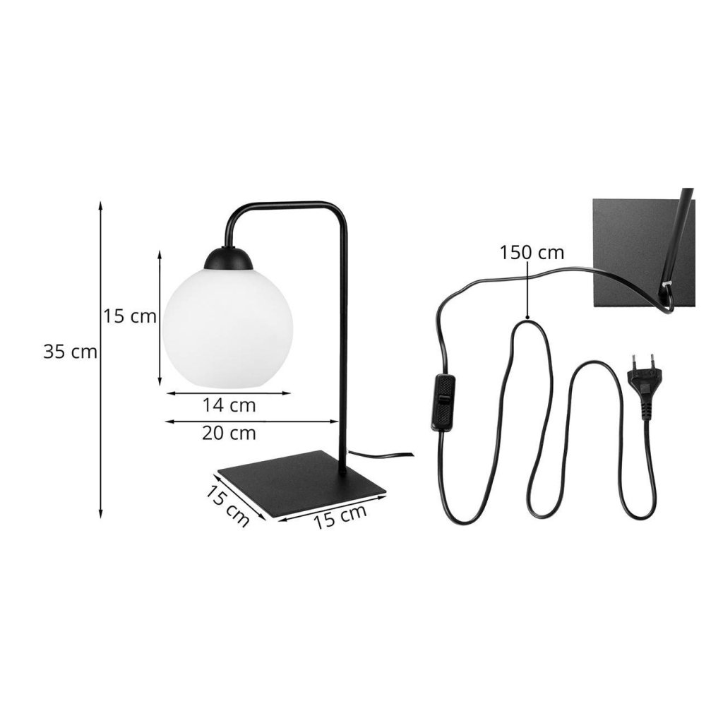Stolní lampa Eliza, 1x bílé skleněné stínítko