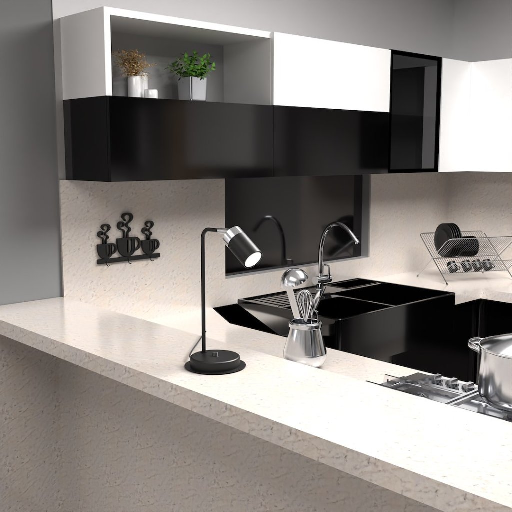 Varianta v kombinaci černého kovu a chromu působí moderně a výrazně. Skvěle vynikne ve světlých interiérech , kde se stane elegantním kontrastem k neutrálnímu základu. Díky svému designu se hodí do různých stylů – od moderního přes loftový až po jemně dekorativní laděné prostory.