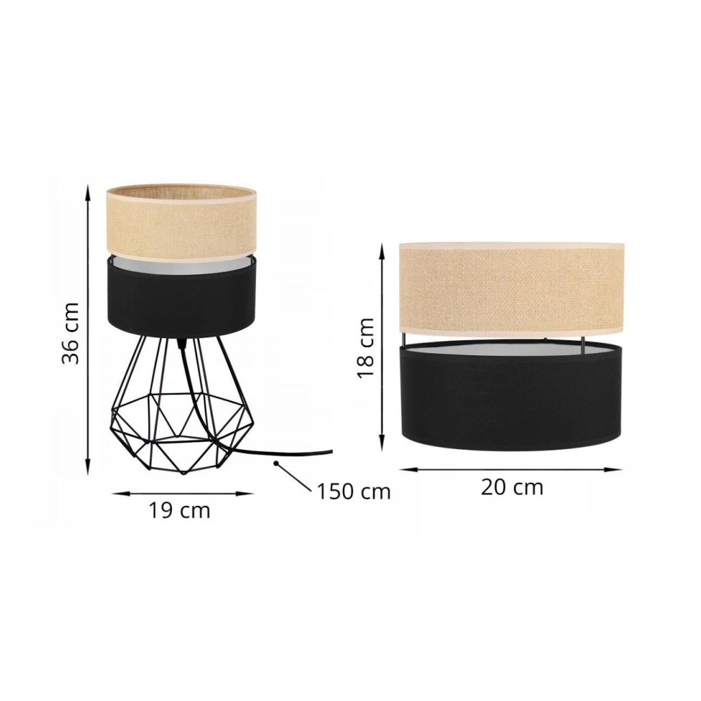 Stolní lampa Juta, 1x jutové/černé textilní stínítko, d