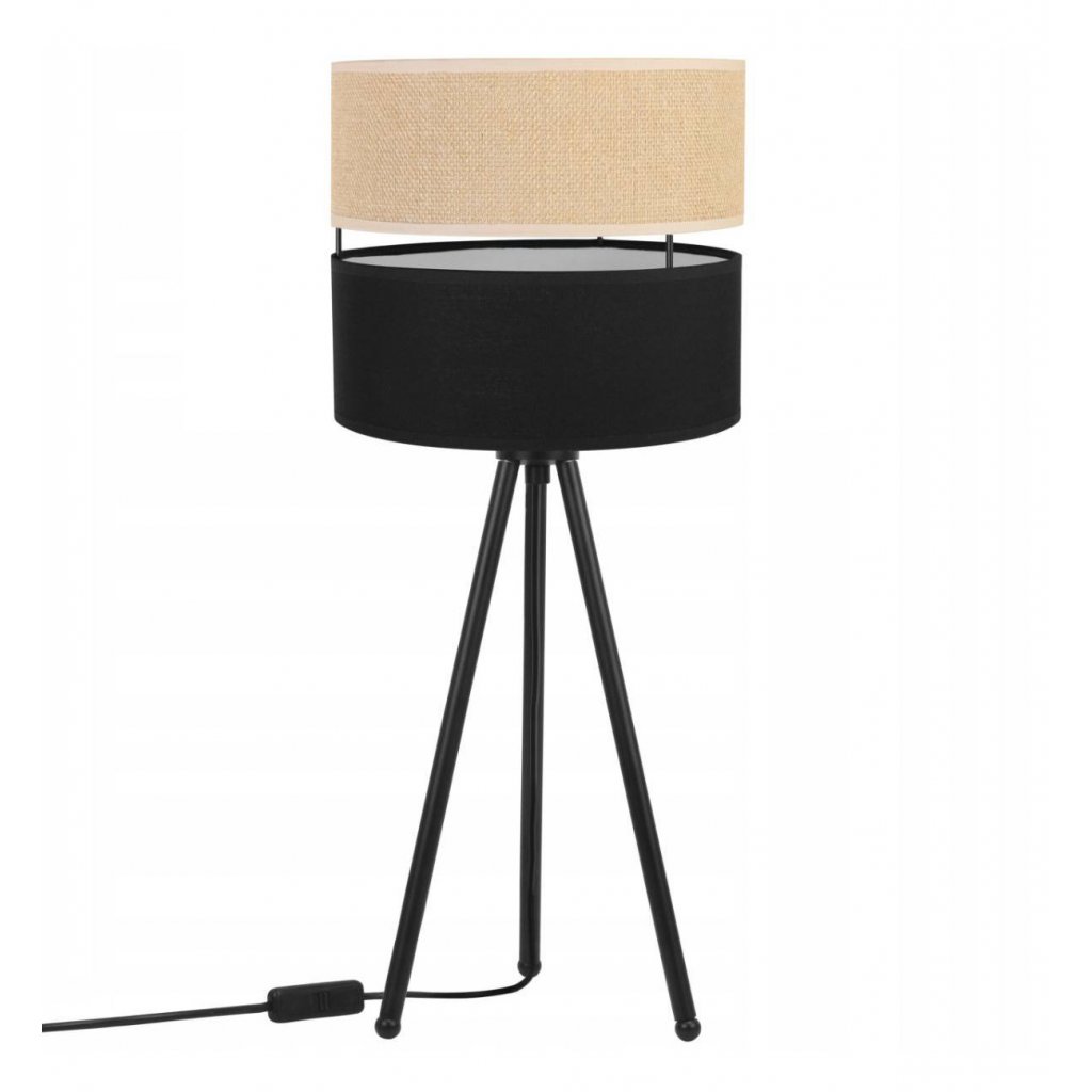 Stolní lampa Juta, 1x jutové/černé textilní stínítko, m
