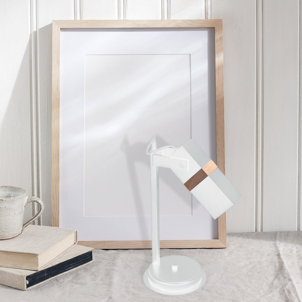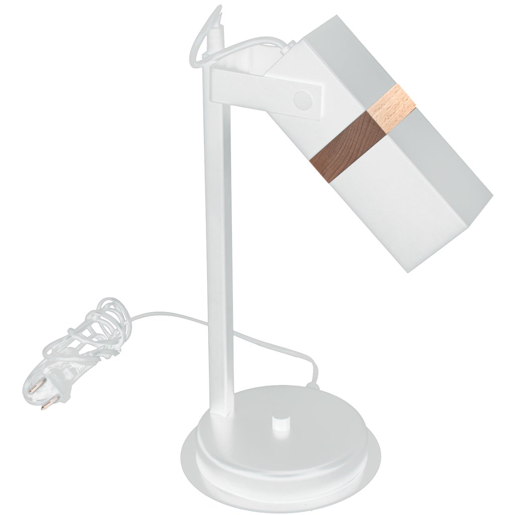 Stolní lampa Vidar, 1x dřevěné/bílé kovové stínítko, w