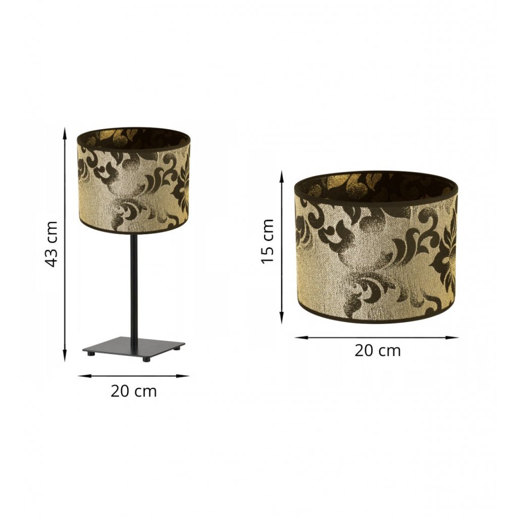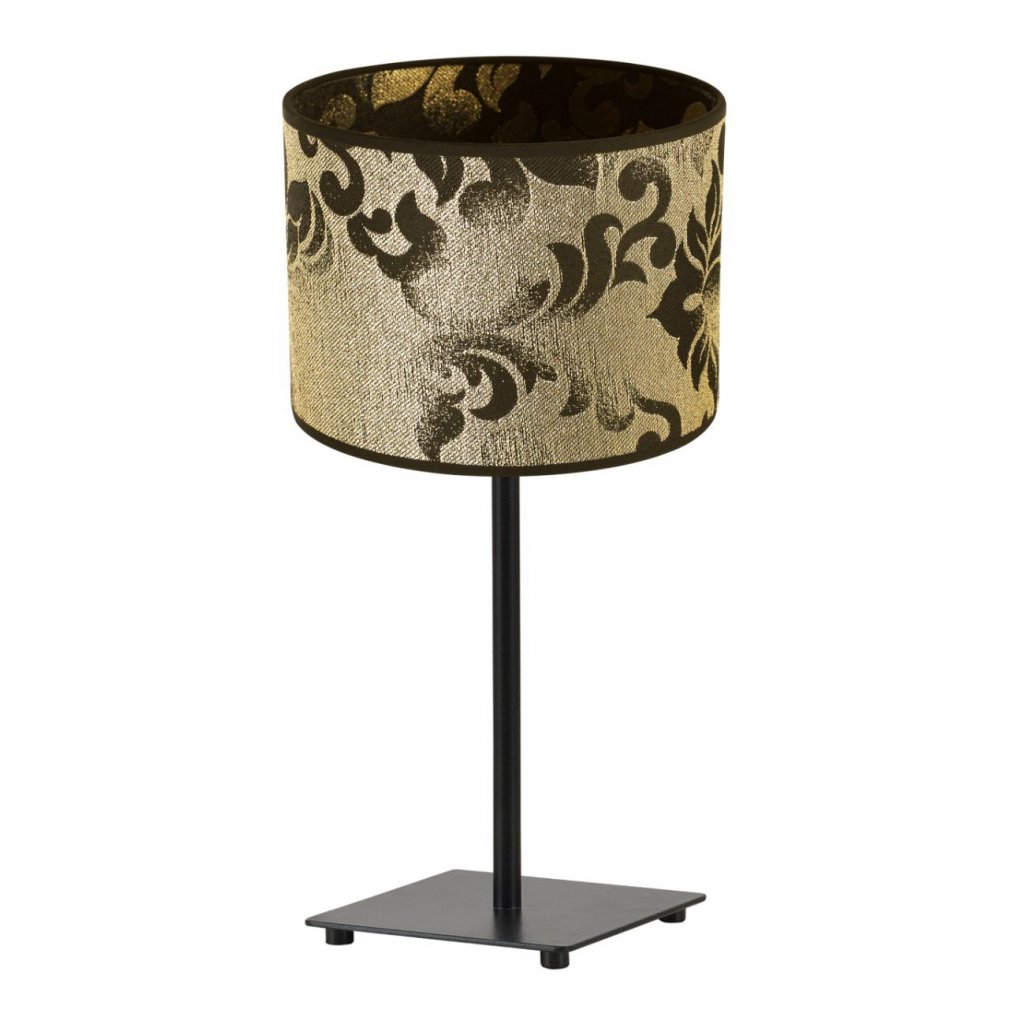 Stolní lampa Werona 1, 1x černé/zlaté textilní stínítko se vzorem, (výběr ze 4 barev konstrukce)