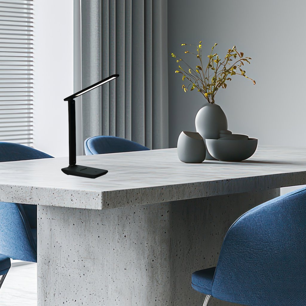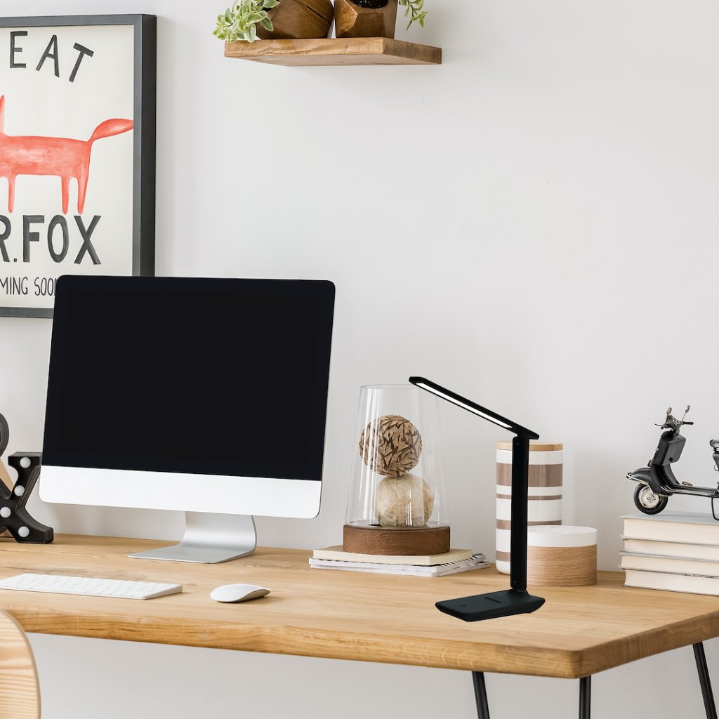 Stolní LED lampa Post v černém provedení je navržena jako praktické a flexibilní řešení osvětlení do kanceláře, studovny nebo domácí pracovny . Napájí se pomocí USB kabelu , což z ní činí ideální volbu na pracovní stůl v moderním interiéru.
