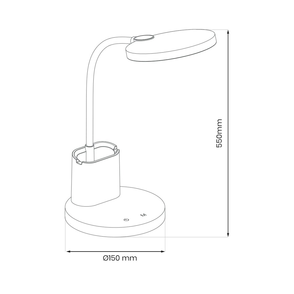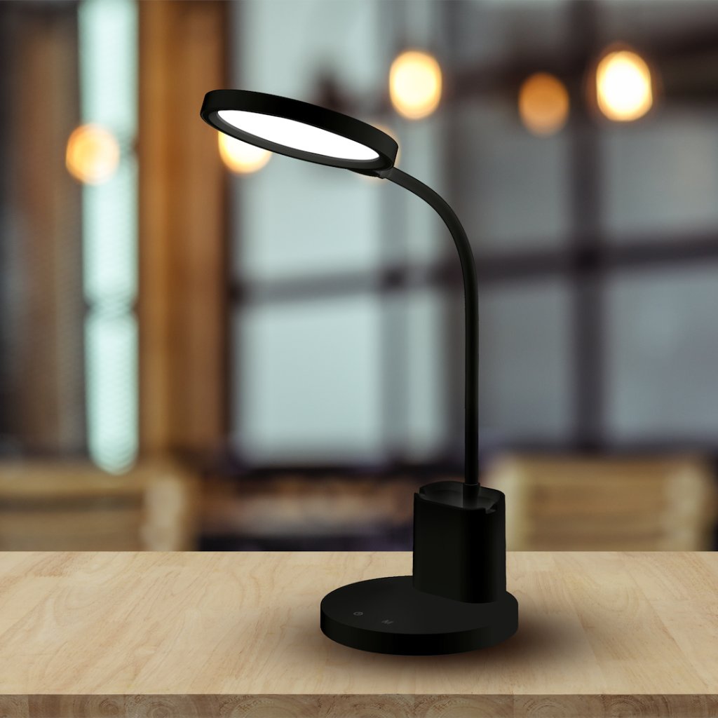 Dotykové ovládání a funkce stmívání umožňují plynule regulovat intenzitu osvětlení podle aktuální potřeby. Lampa je zároveň vybavena praktickým stojanem na telefon a integrovaným organizérem na pera a drobnosti, což pomáhá udržet pořádek na pracovním stole.