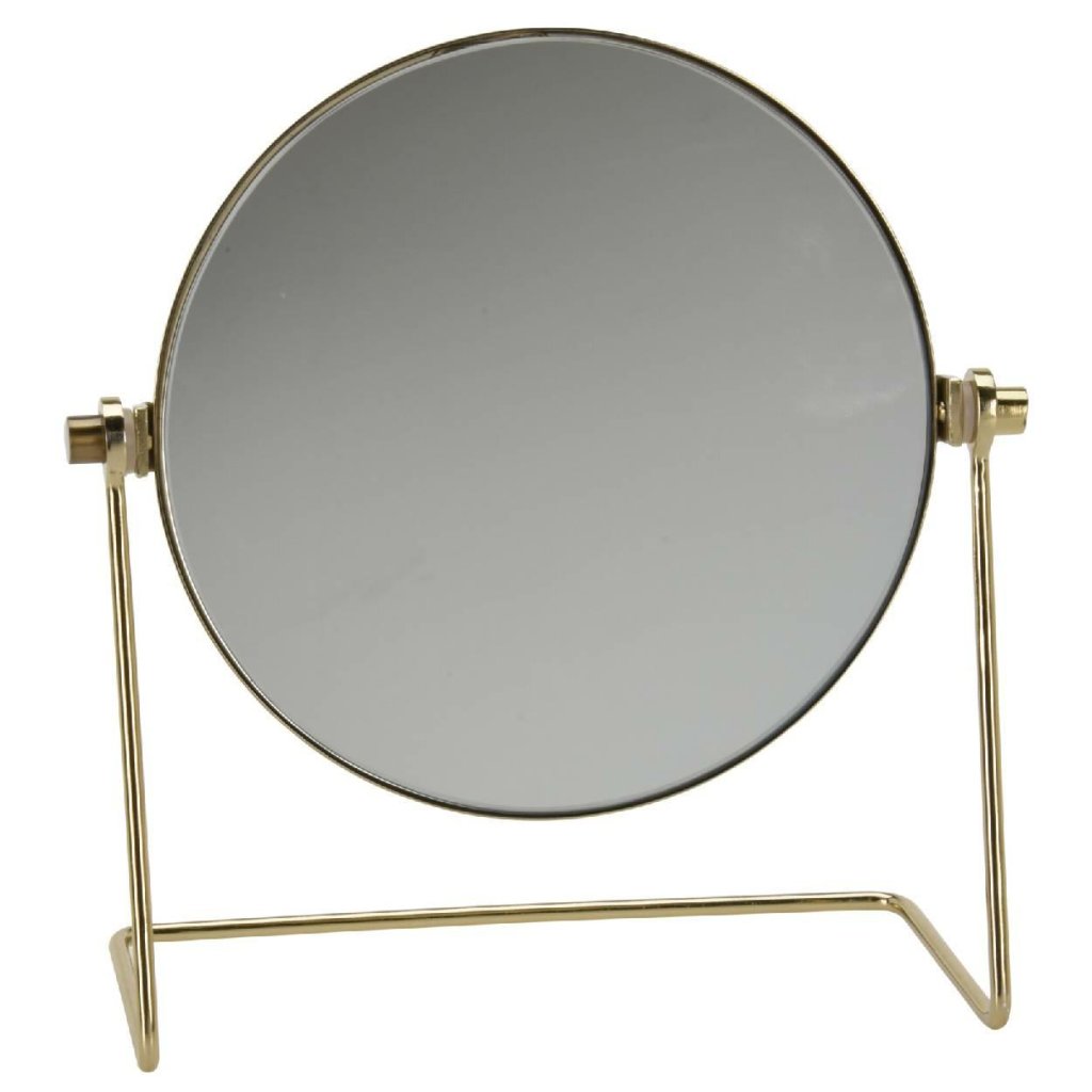 Stolní zrcadlo Cara, zlaté je elegantní a praktický doplněk , který vynikne na toaletním stolku, komodě či koupelnové poličce . Kulaté zrcadlo je zasazeno v kovové zlaté obrubě s jemným leskem , což mu dodává moderní a vkusný vzhled . Díky kompaktní velikosti a nízké hmotnosti (pouze 325 g) je snadno přenosné a ideální pro každodenní líčení nebo péči o pleť. Stabilní stojan zaručuje bezpečné a pohodlné používání , zatímco galvanizované zlaté provedení dodává celku. Vhodné do koupelny, ložnice nebo i jako .