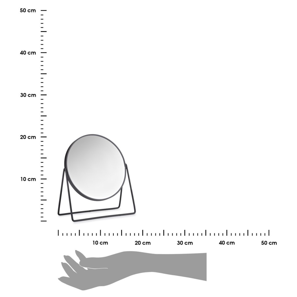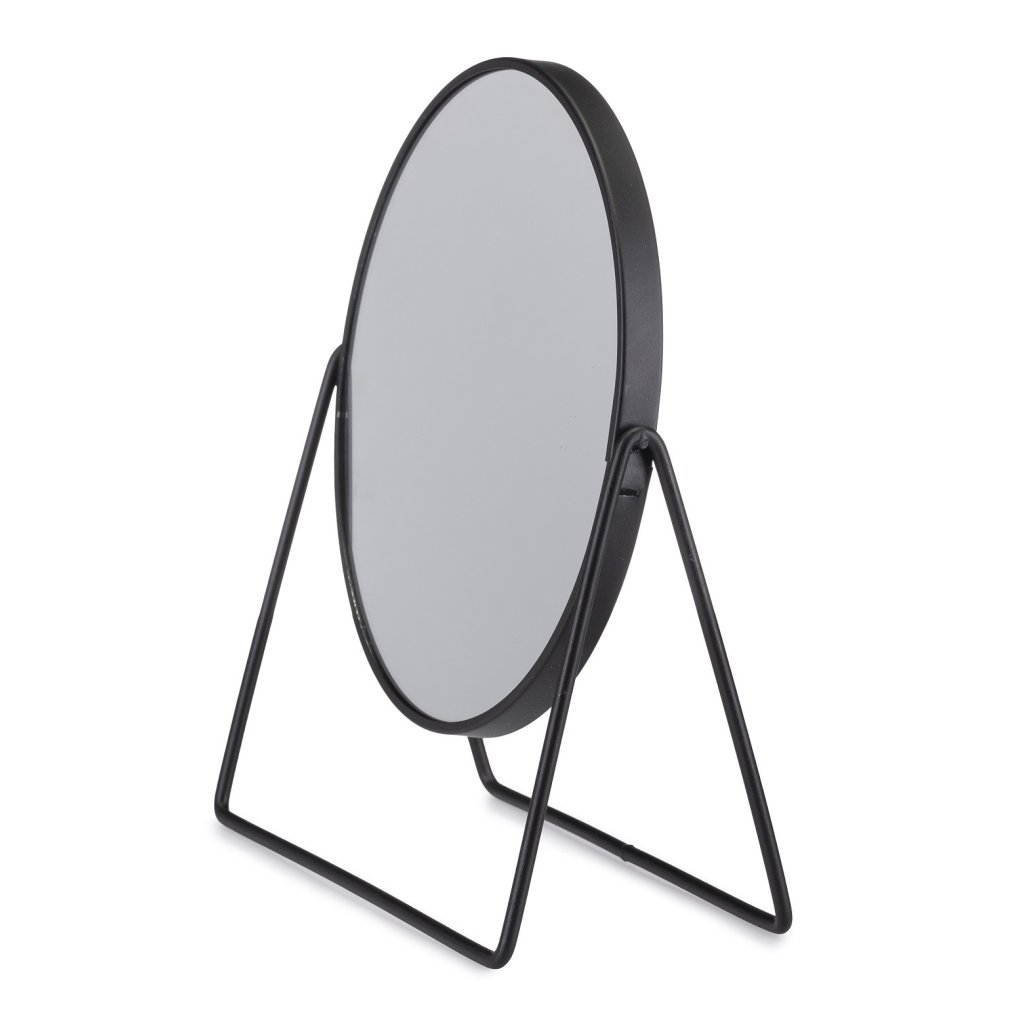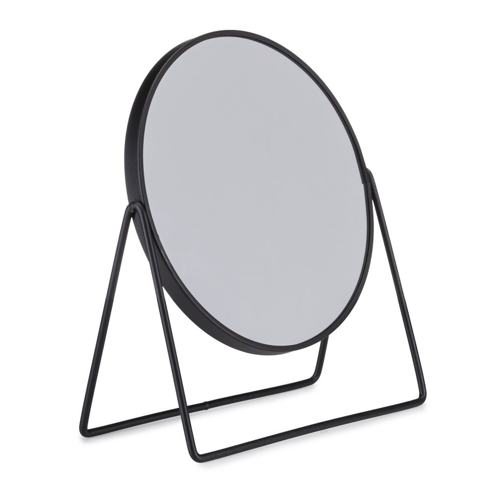 Stolní zrcadlo Clara, černé je praktický a elegantní pomocník pro každodenní rituály, jako je líčení či péče o pleť . Kulaté oboustranné zrcadlo nabízí z jedné strany klasické zobrazení az druhé trojnásobné zvětšení , což oceníš při detailní práci. Stabilní stojan z kovu zaručuje pevnost a dlouhou životnost, zatímco kompaktní rozměry umožňují snadné umístění na toaletní stolek, koupelnovou poličku nebo kosmetický pult . Díky černému provedení působí zrcadlo decentně a moderně , a hodí se téměř do každého interiéru. Průměr zrcadlové plochy je 17 cm , což zajišťuje dostatečný prostor pro pohodlné používání bez zabírání nadbytečného místa.