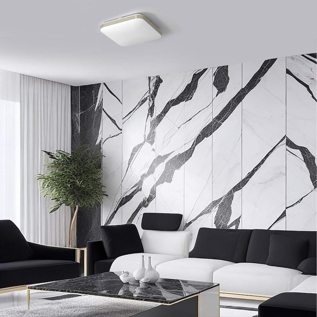 Díky stupni krytí IP44 je svítidlo odolné vůči vlhkosti a prachu , a proto je vhodné nejen do obývacího pokoje či chodby, ale také do koupelny, kuchyně nebo technických místností . Jeho čtvercový tvar v kombinaci s bílým povrchem a elegantními zlatými detaily působí moderně a vkusně zároveň.