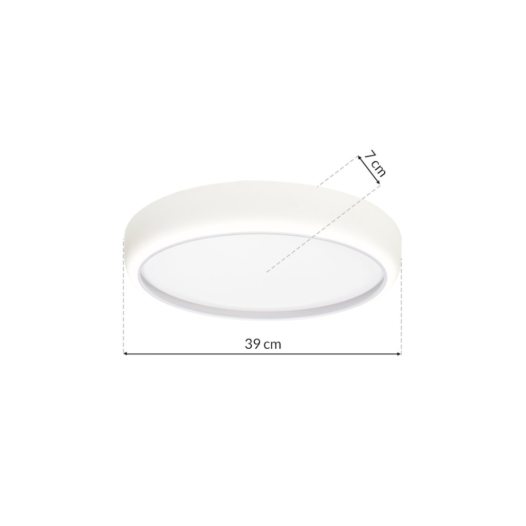 Stropní LED svítidlo Gea v bílém provedení je elegantním a zároveň moderním řešením osvětlení, které se dokonale hodí do interiérů laděných v duchu minimalismu a geometrie . Svým tvarem i neutrálním barevným provedením výborně zapadne mezi oblíbené přírodní tóny jako béžová, šedá, hnědá či černá. Toto stropní svítidlo o průměru 39 cm a výšce pouhých 7 cm se výborně uplatní jako hlavní osvětlení menších místností nebo jako doplněk k zónovému osvětlení. Skvěle poslouží v kuchyni, ložnici, obývacím pokoji nebo v předsíni . Model je vyroben z odolné kombinace kovu a kvalitního plastu , což zaručuje jeho dlouhou životnost a odolnost vůči běžnému opotřebení. Díky krytí IP20 je ideální do suchých obytných prostor. Svítilna je vybavena LED modulem o výkonu 36 W , který poskytuje světelný tok 2520 lm . Pomocí přiloženého dálkového ovladače lze snadno regulovat intenzitu osvětlení i jeho barevnou teplotu v rozsahu od teplé (3000 K) přes neutrální až po studenou bílou (6000 K) . Tento model kombinuje stylový vzhled, moderní technologie a praktické funkce , díky čemuž se stane výborným doplňkem každého moderního bydlení.Doplňkové parametry