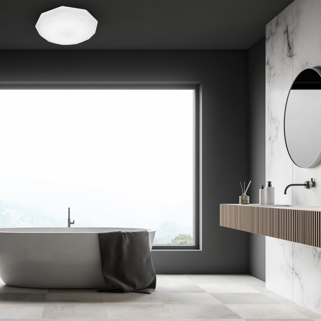 Stropní svítidlo z kolekce Hex zaujme na první pohled svým originálním tvarem , který připomíná styl z minulých dekád a vnáší do interiéru jemný retro nádech . Průměr svítidla je 50 cm , díky čemuž působí jako dominantní designový prvek v místnosti.