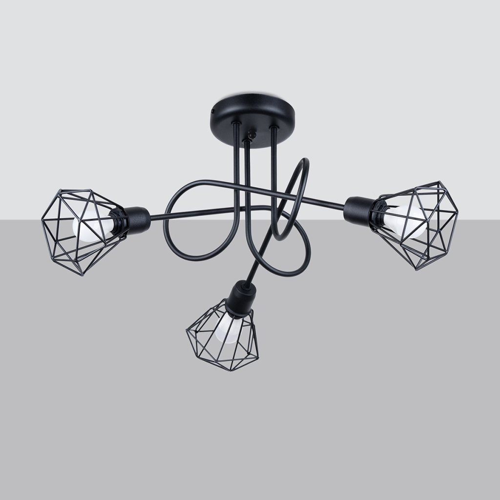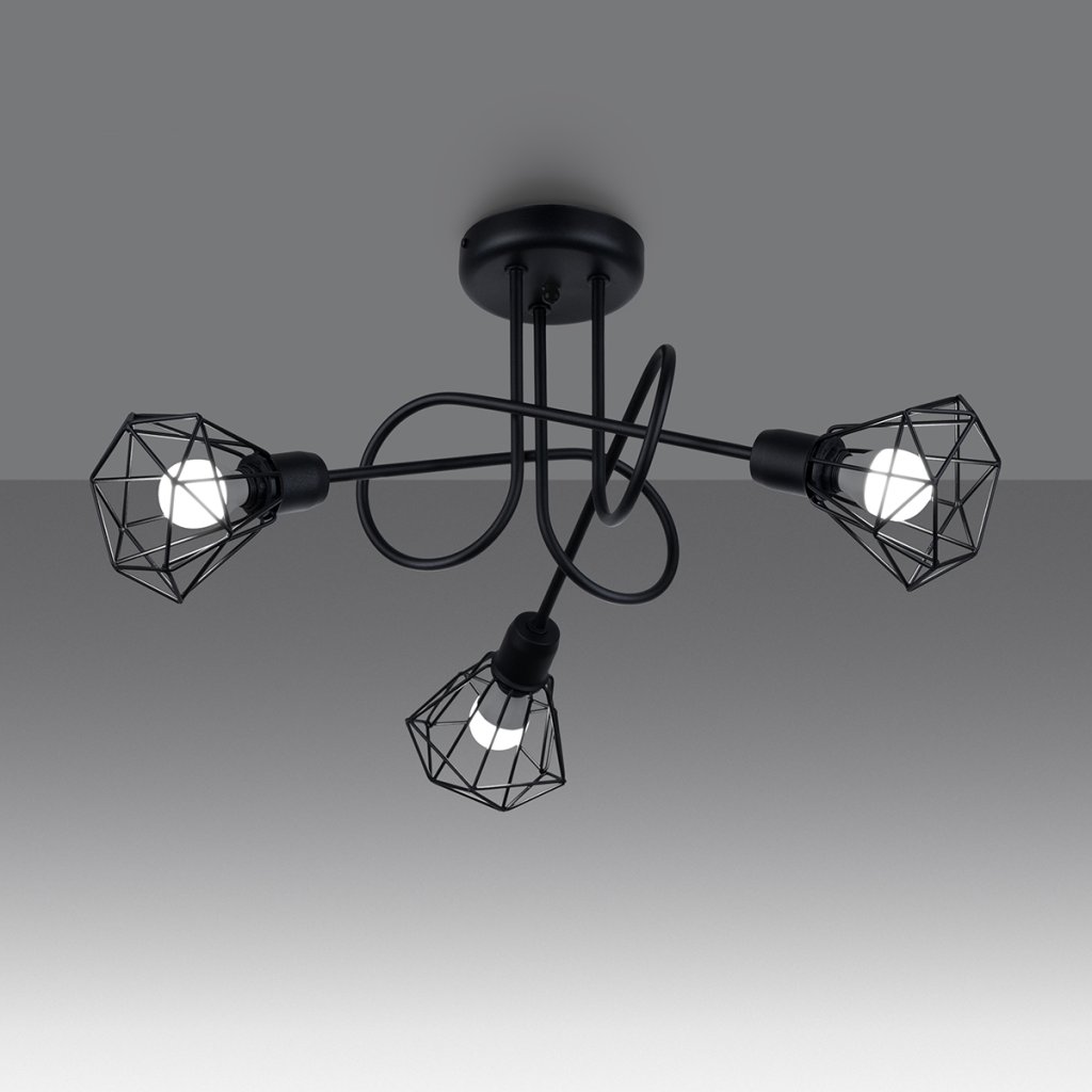 Stropní svítidlo Artemis, 3x černé drátěné stínítko