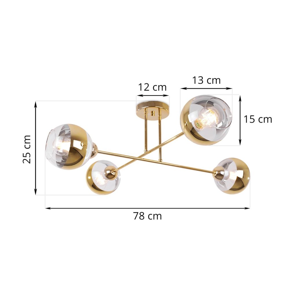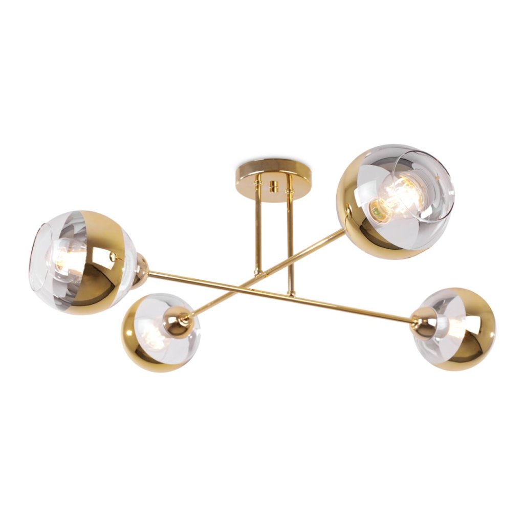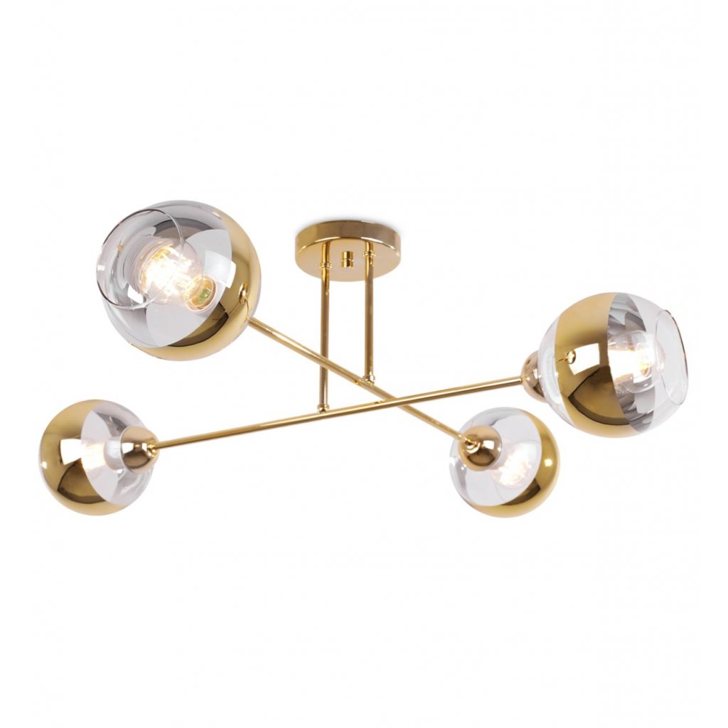 Stropní svítidlo Asturia, 4x zlaté/transparentní skleněné stínítko, G