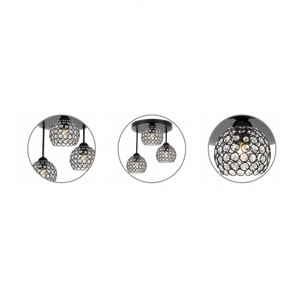 Stropní svítidlo Crystal, 3x černé křišťálové stínítko,