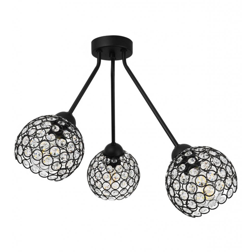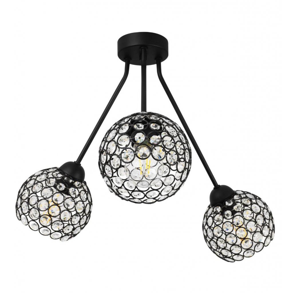 Stropní svítidlo Crystal Trio, 3x černé křišťálové stínítko