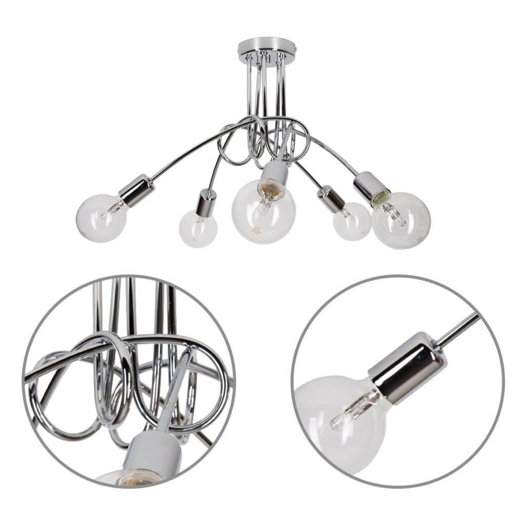 Stropní svítidlo Edison 5, chromové tělo svítidla