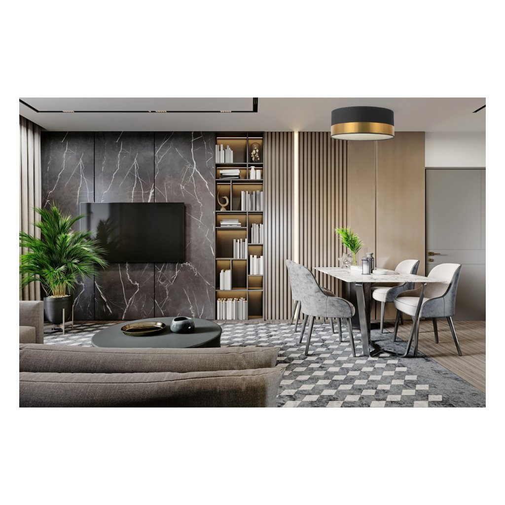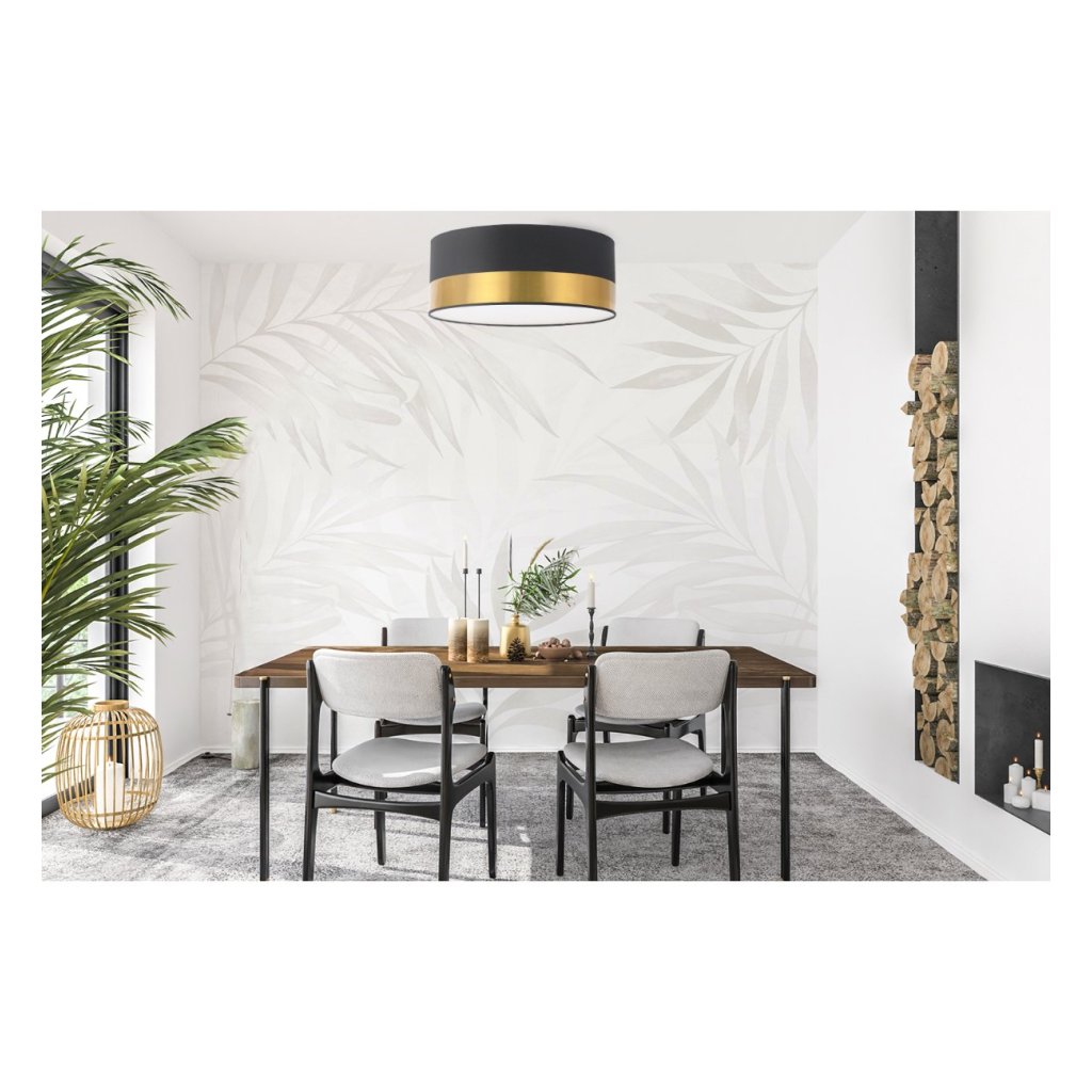 Stropní svítidlo Elegance, 1x zlaté/černé textilní stínítko, (bílé plexisklo), (fi 40cm)