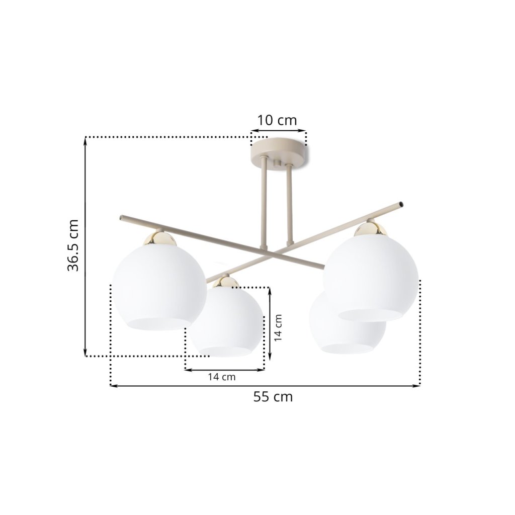 Stropní svítidlo Eliza, 4x bílé skleněné stínítko, be/g