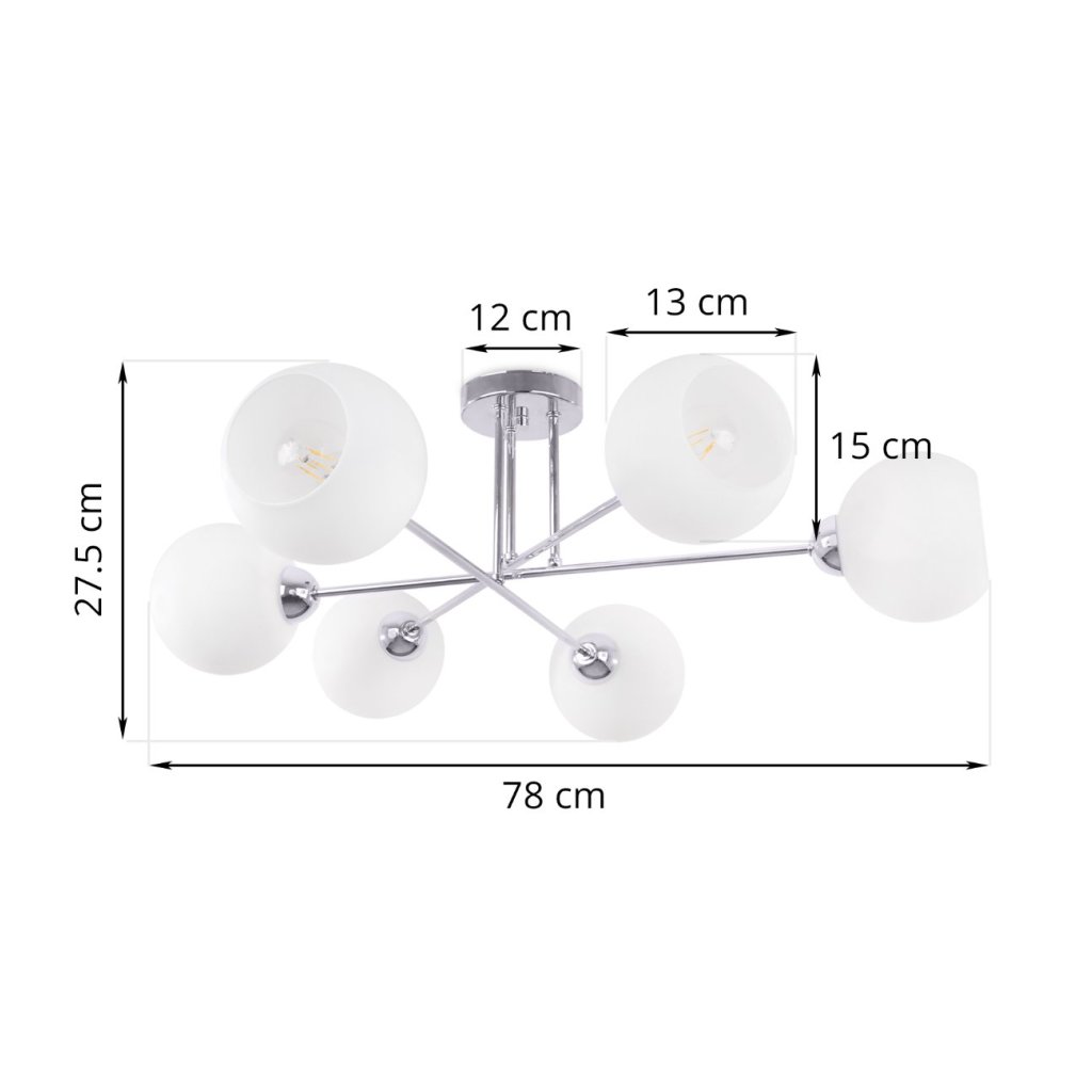 Stropní svítidlo Eliza, 6x bílé skleněné stínítko, CH