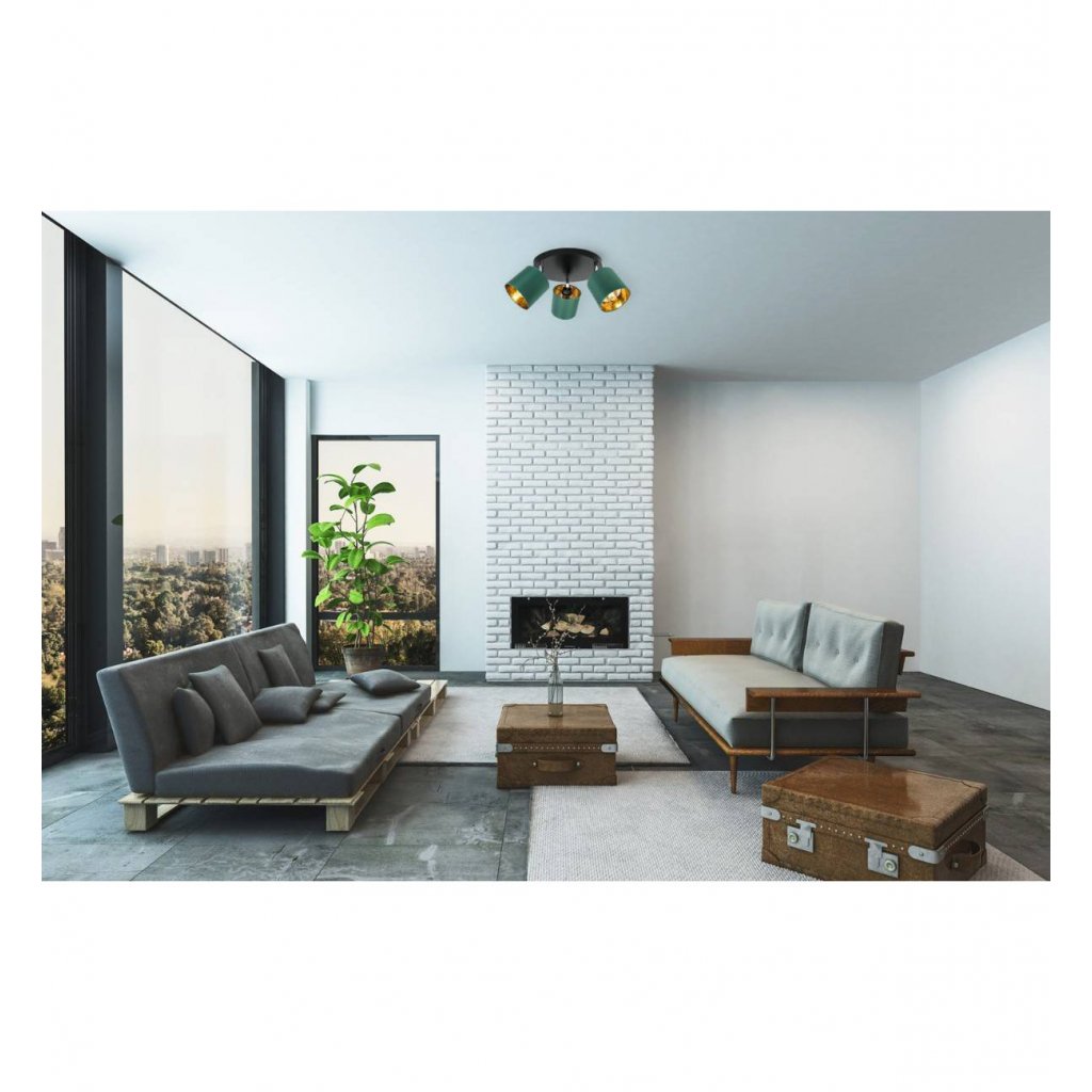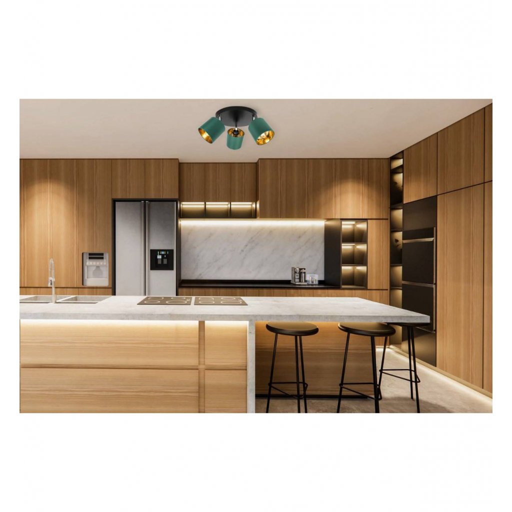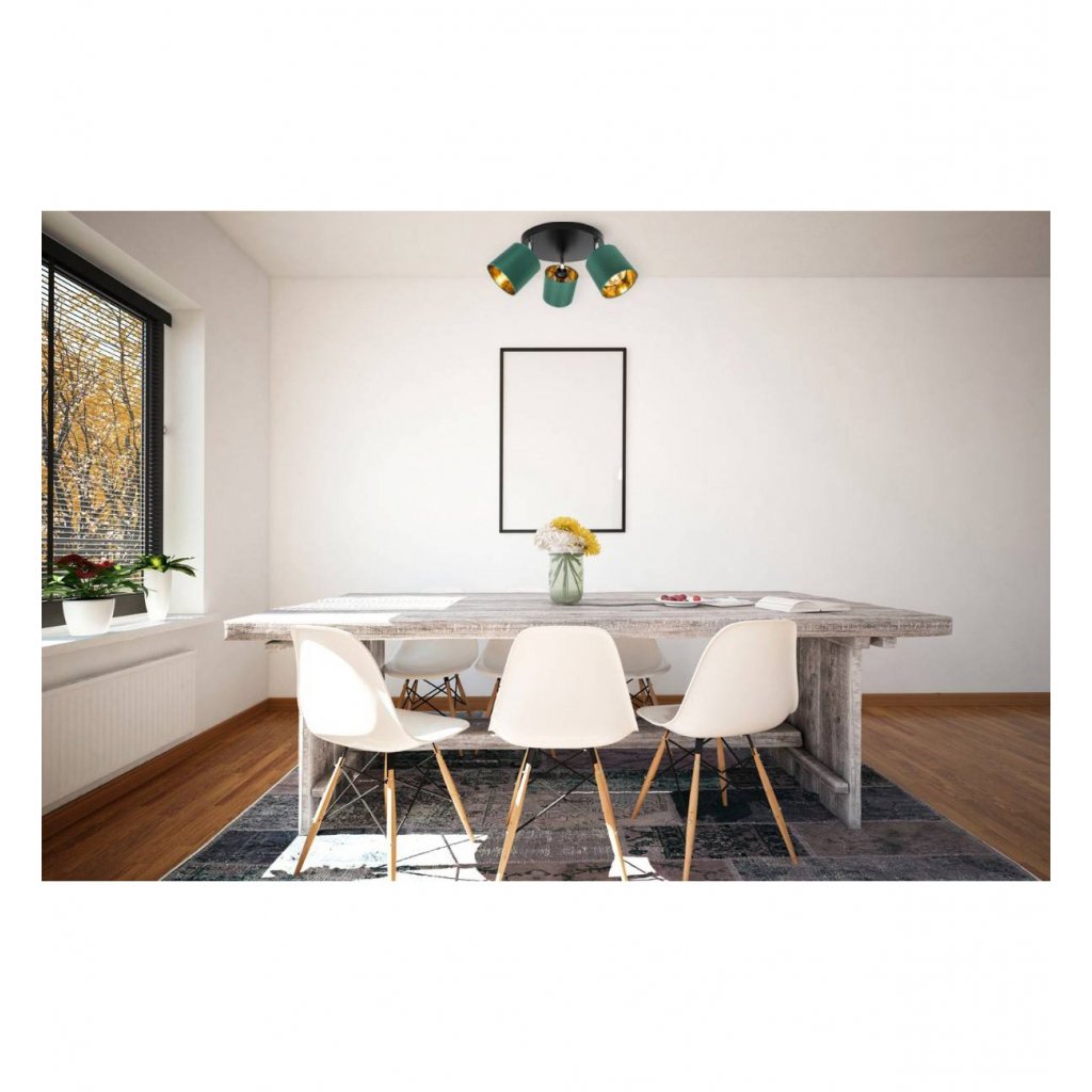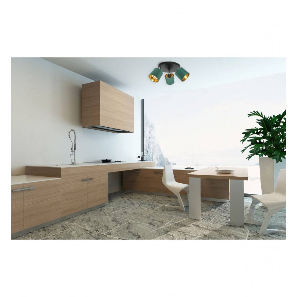 Stropní svítidlo Gama, 3x zelené textilní stínítko, (možnost polohování),