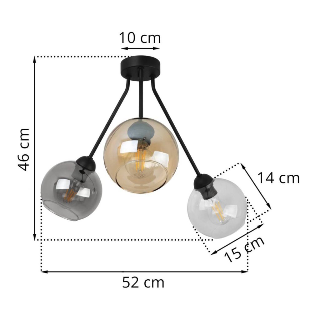 Stropní svítidlo Haga Trio, 3x skleněné stínítko (mix 3 barev)