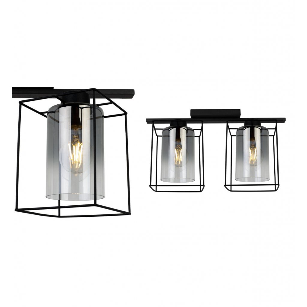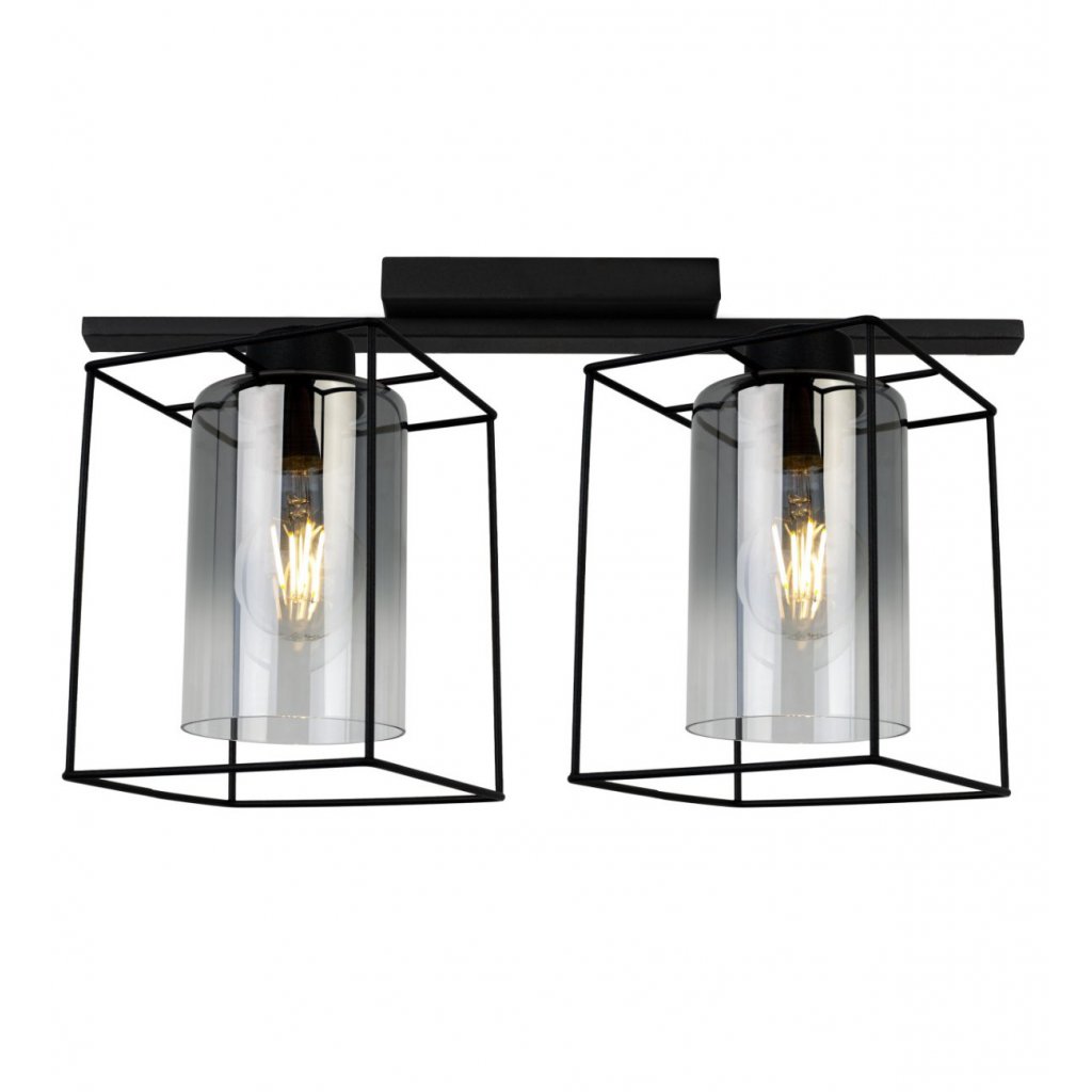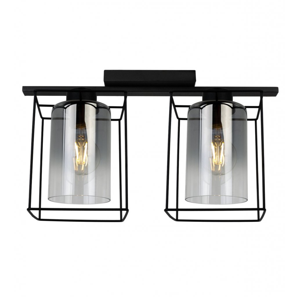 Stropní svítidlo Hella Cage, 2x grafitové skleněné stínítko v kovovém rámu