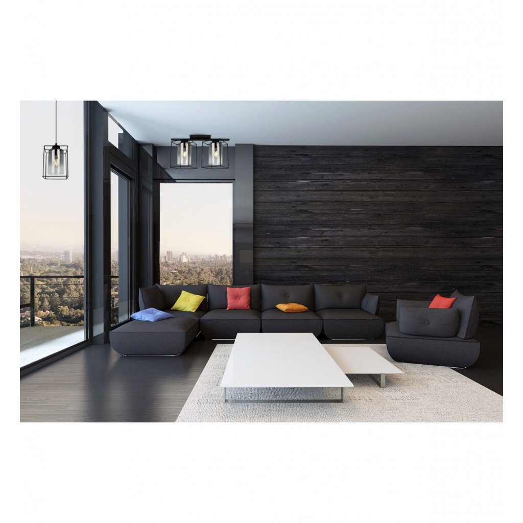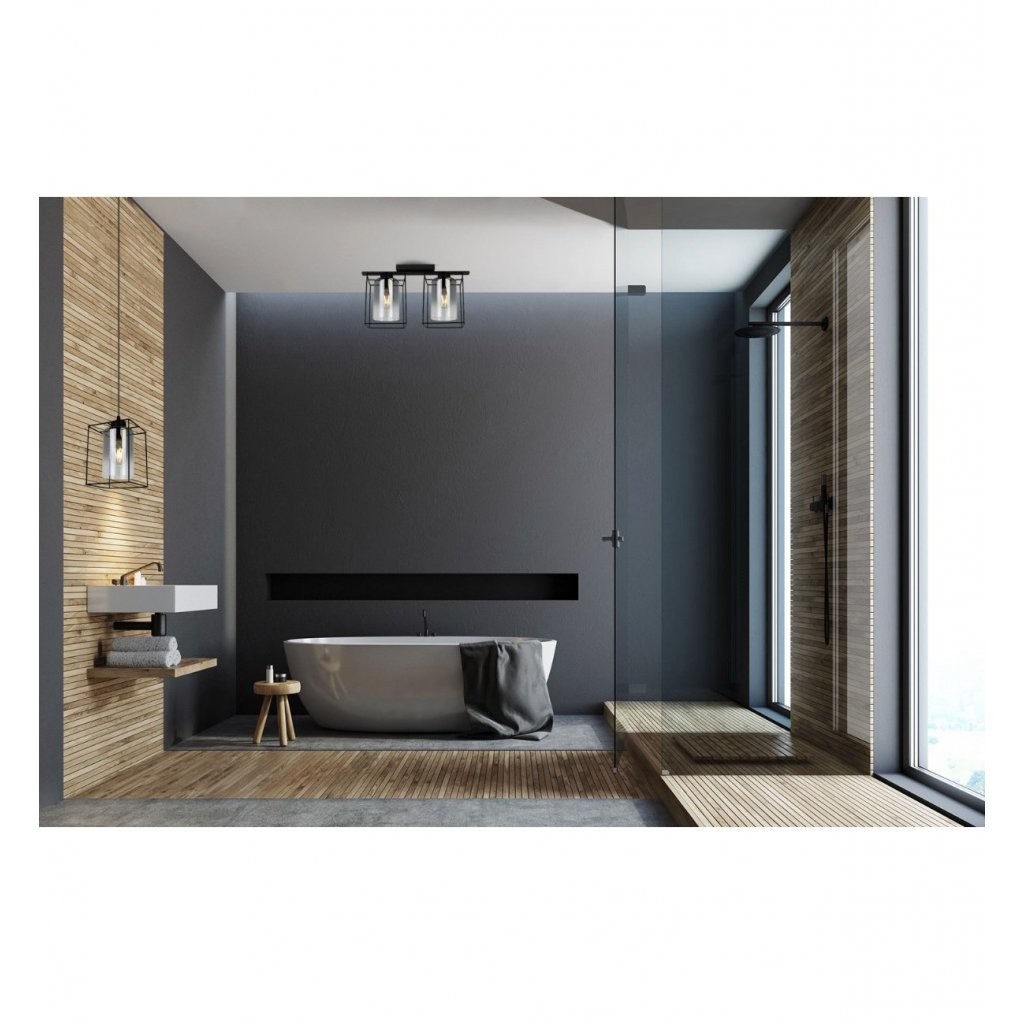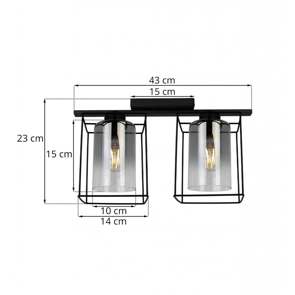 Stropní svítidlo Hella Cage, 2x grafitové skleněné stínítko v kovovém rámu