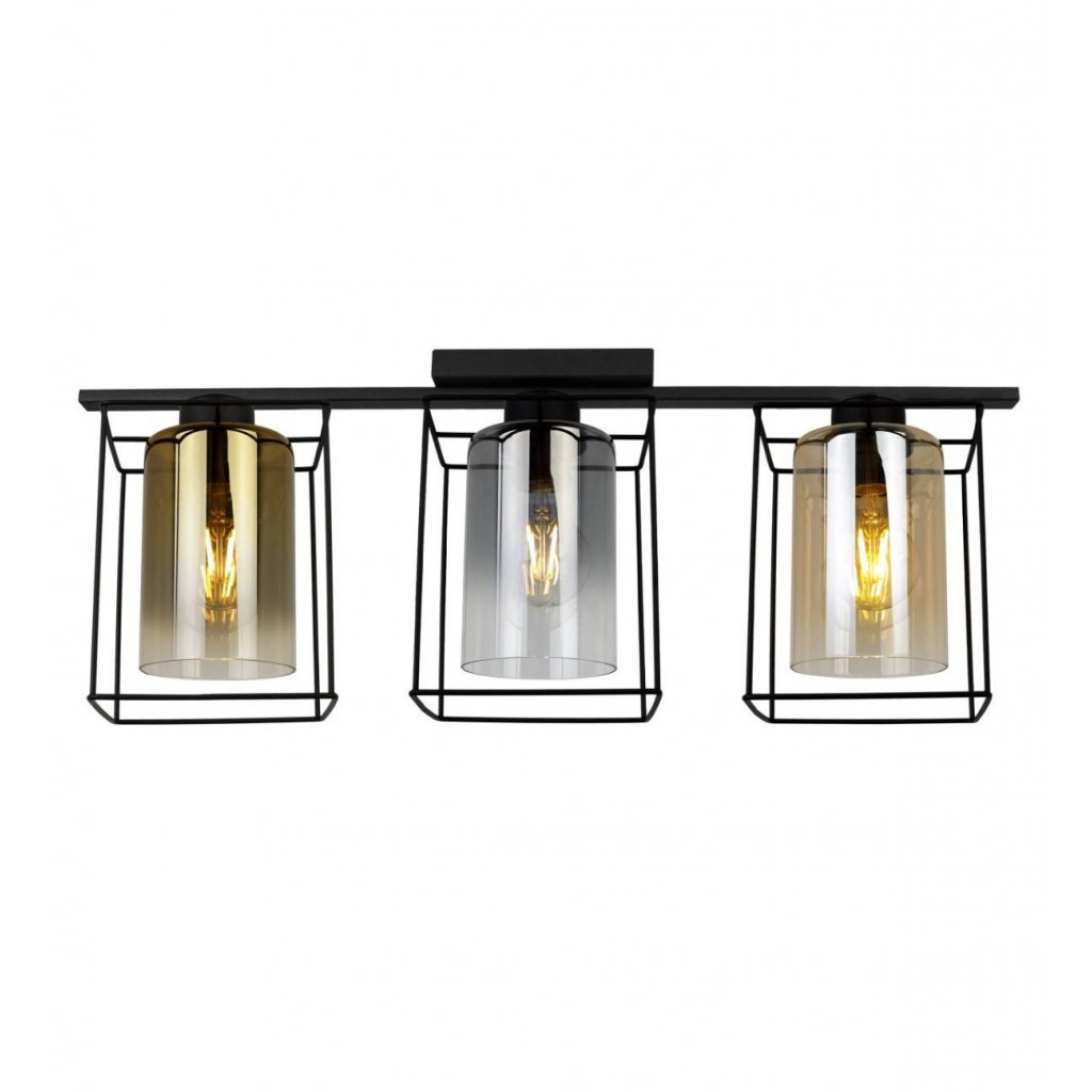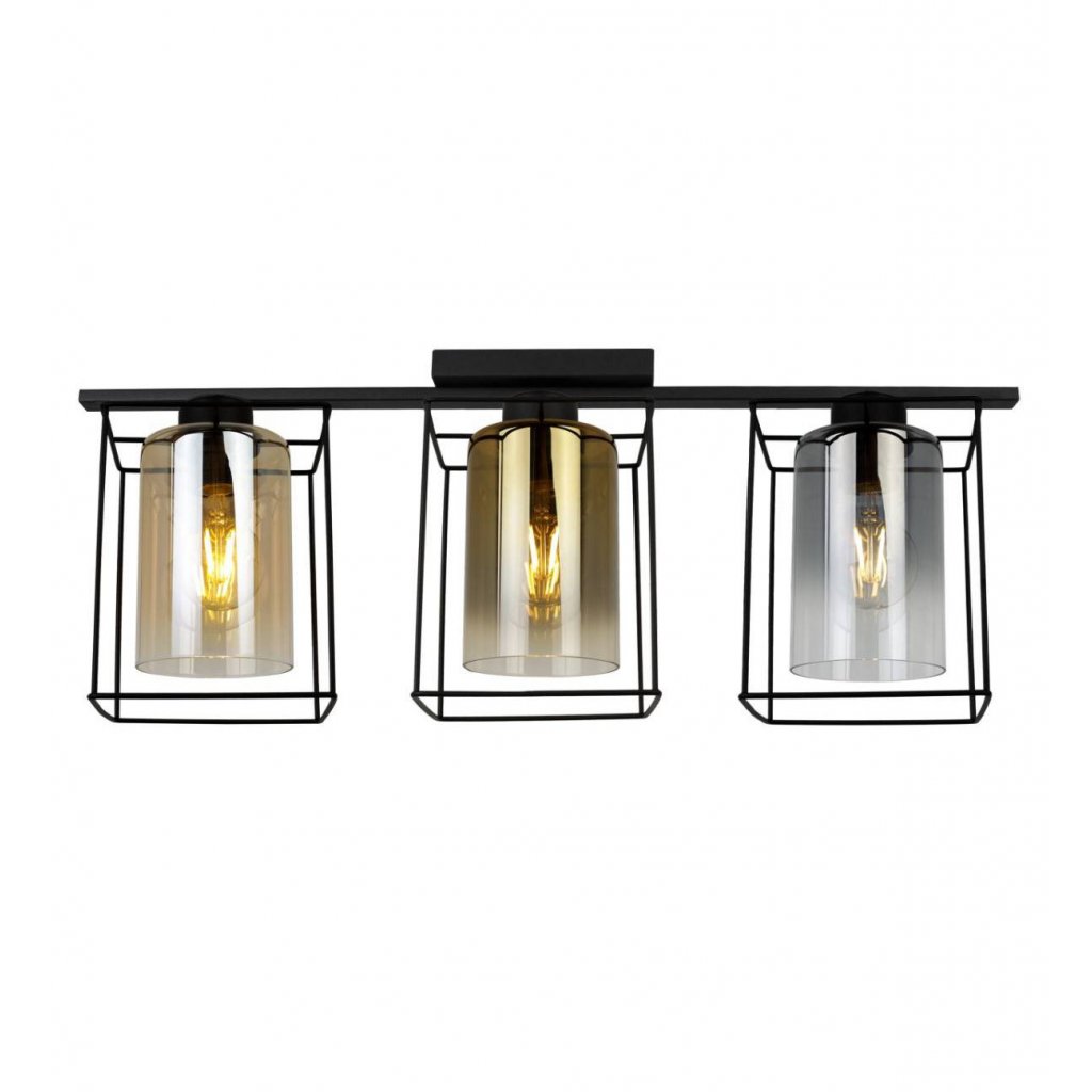 Stropní svítidlo Hella Cage, 3x skleněné stínítko (mix 3 barev) v kovovém rámu