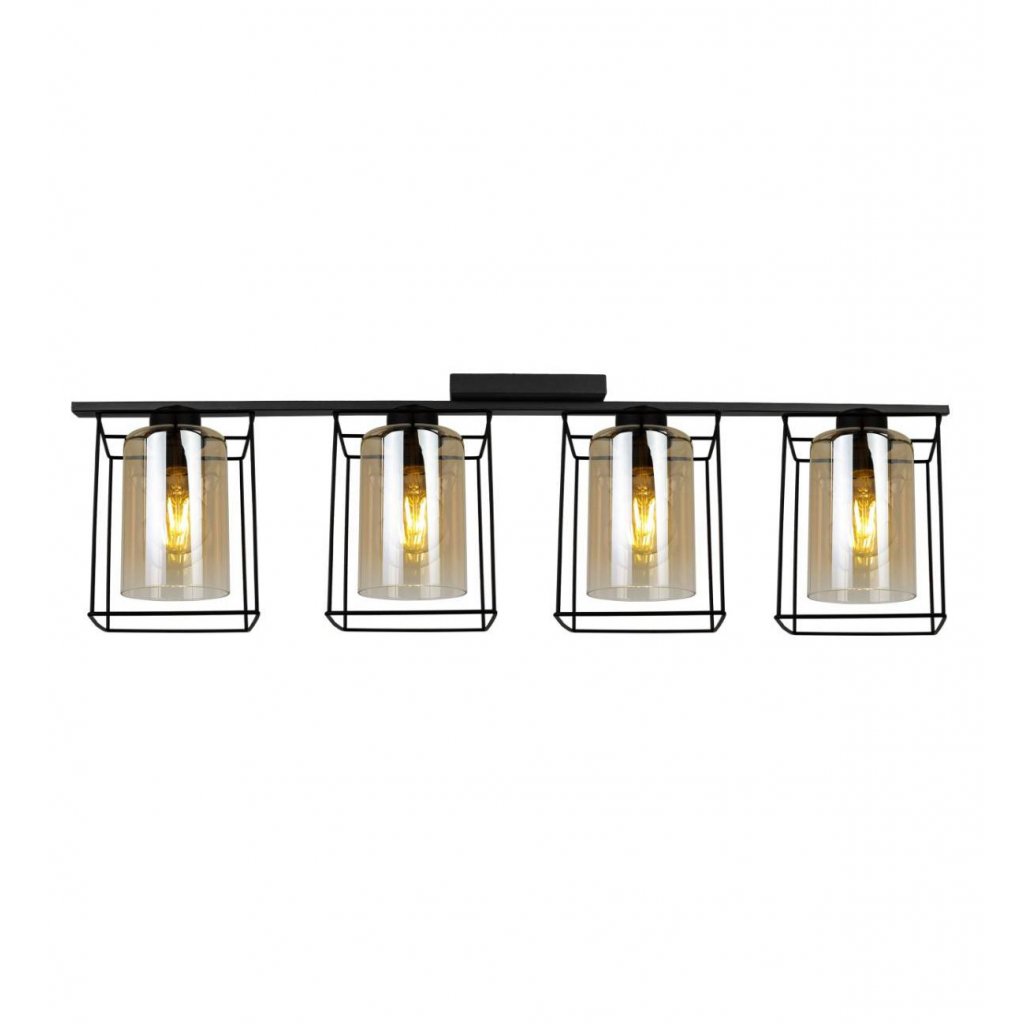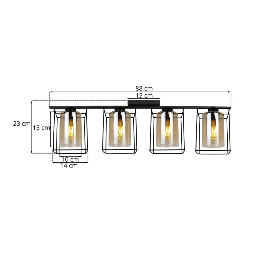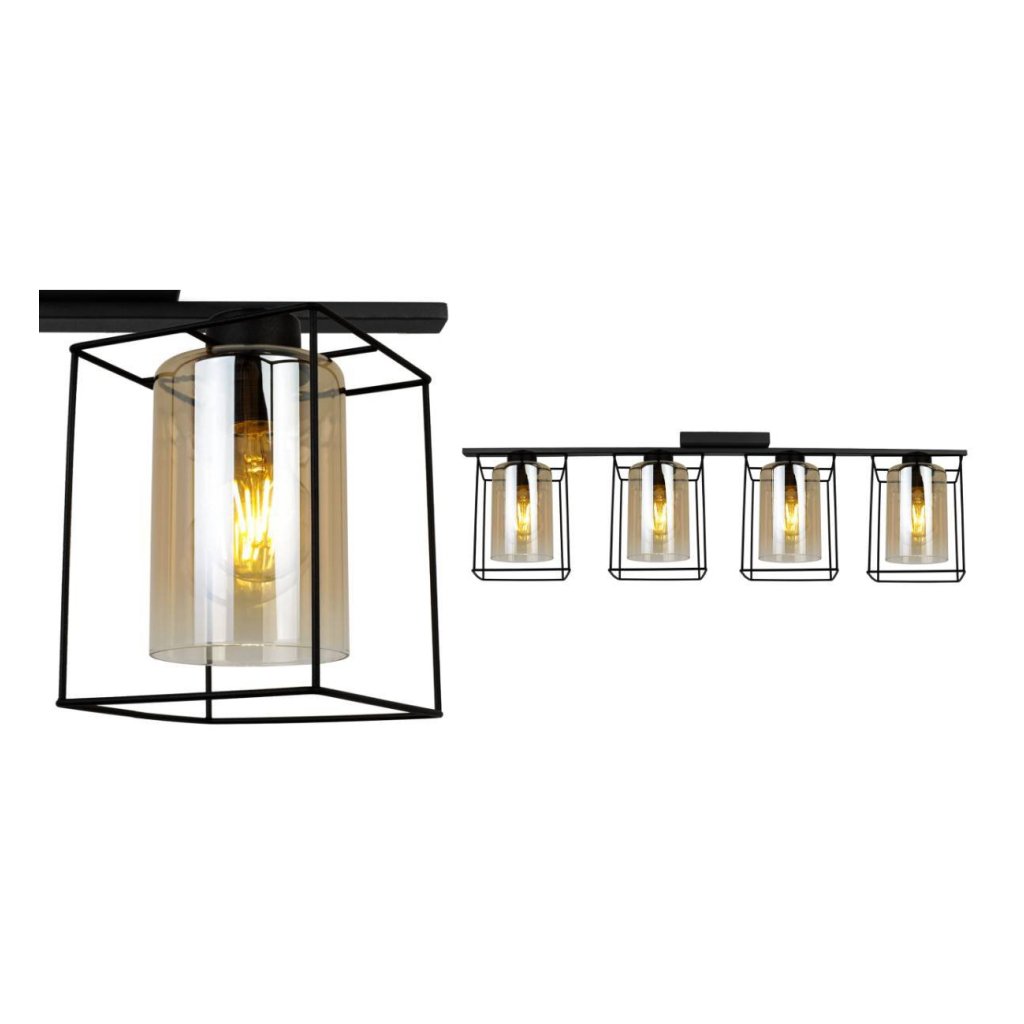 Stropní svítidlo Hella Cage, 4x medové skleněné stínítko v kovovém rámu