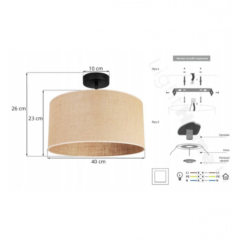 Stropní svítidlo Juta, 1x jutové stínítko, (výběr ze 2 barev konstrukce), (fi 40cm)