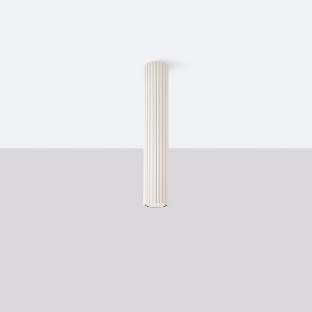 Stropní svítidlo KARBON s jedním béžovým kovovým stínidlem o délce 40 cm je dokonalou kombinací minimalistického designu a moderní elegance. Válcový tvar s jemným stříbrným povrchem vytváří zajímavý světelný efekt, který podtrhne charakter každého interiéru. Béžová barva působí harmonicky a snadno se kombinuje s neutrálními i kontrastními odstíny v místnosti.