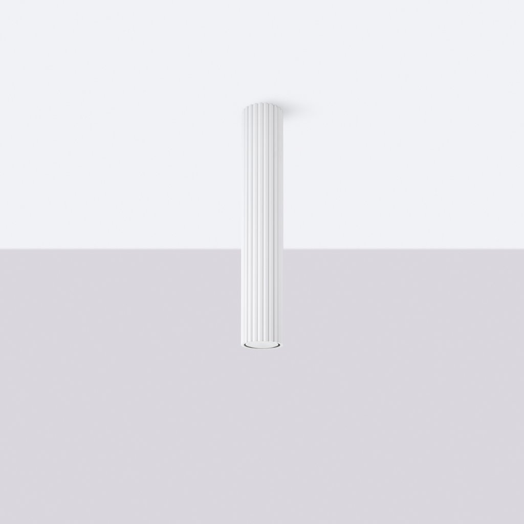 Stropní svítidlo KARBON s bílým kovovým stínidlem o délce 40 cm je stylovým doplňkem moderních interiérů, který v sobě spojuje minimalismus, eleganci a funkčnost. Jeho čisté linie a jemně žebrovaný povrch působí decentně, přesto dodávají prostoru charakter a moderní nádech.