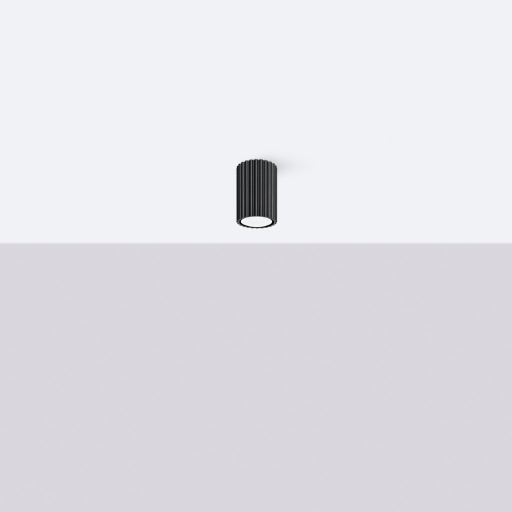 Stropní svítidlo KARBON s jedním černým kovovým stínidlem o délce 10 cm je stylovým řešením pro moderní interiéry, kde je kladen důraz na jednoduchost a kvalitu. Minimalistický design doplňuje jemně žebrovaný povrch, který svítidlu dodává charakter a zajímavou strukturu.