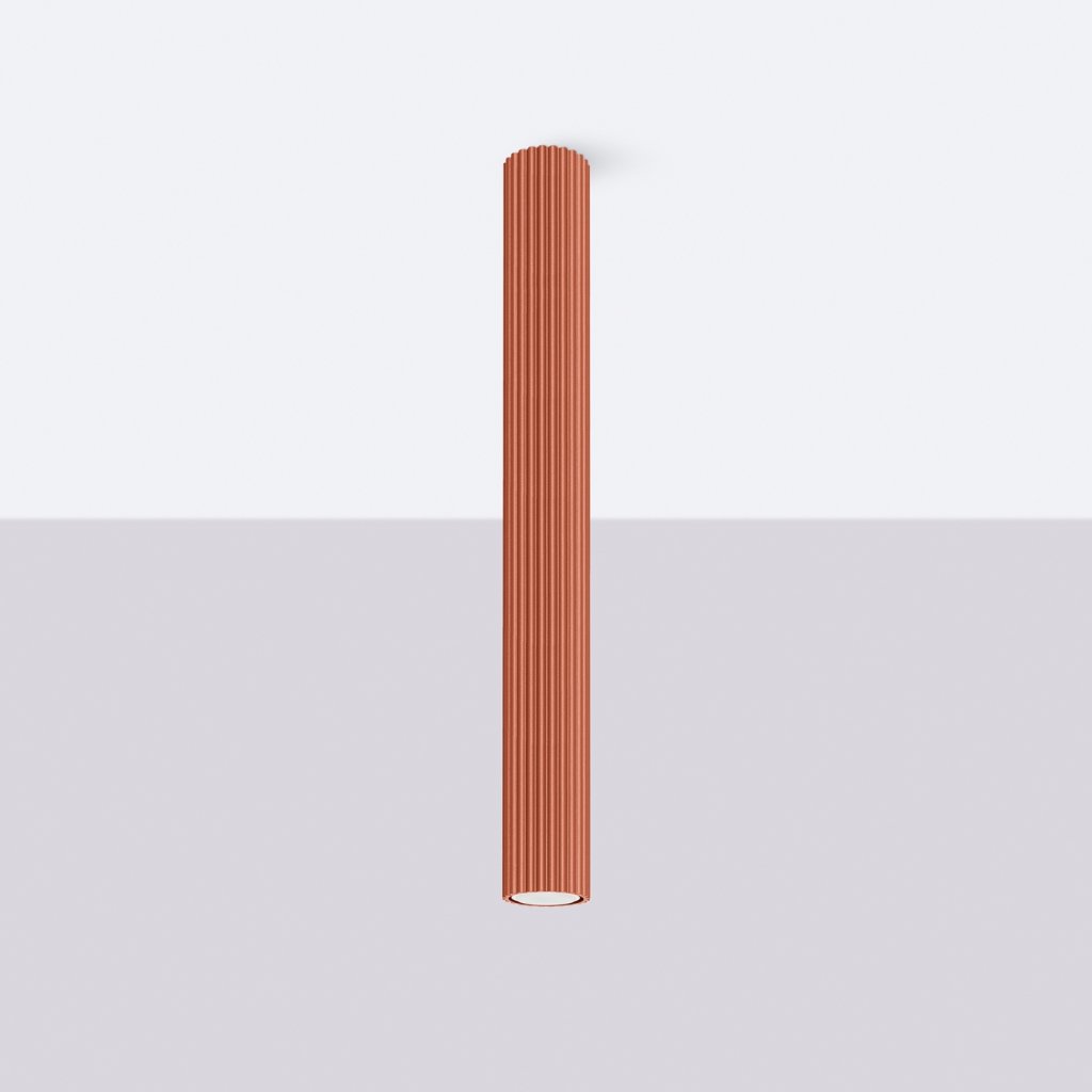 Stropní svítidlo KARBON s jedním okrově červeným kovovým stínidlem a průměrem 60 cm je moderní a elegantní osvětlovací prvek, který v sobě spojuje minimalismus, funkčnost a osobitý styl. Jeho charakteristický žebrovaný povrch dodává svítidlu jemný industriální vzhled, který se skvěle hodí do moderních, loftových a skandinávských interiérů. Svítidlo se stane nejen zdrojem světla, ale také vkusnou dekorací, která oživí celý prostor.
