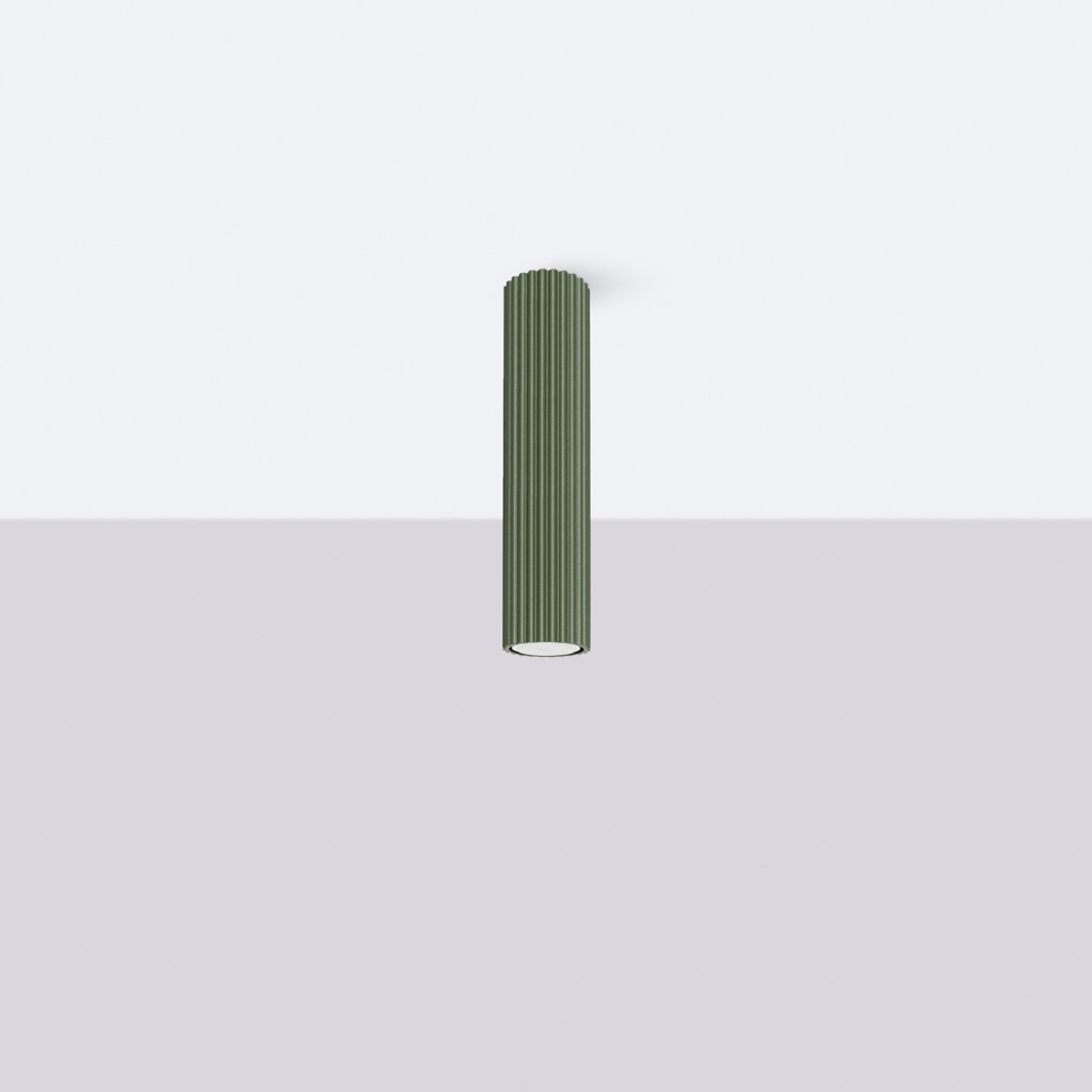 Stropní svítidlo KARBON s jedním olivově zeleným kovovým stínidlem je kombinací moderního designu, jednoduchosti a elegance. Žebrovaný povrch dodává svítidlu originální vzhled, který dokonale vynikne v moderních, industriálních a minimalistických interiérech.