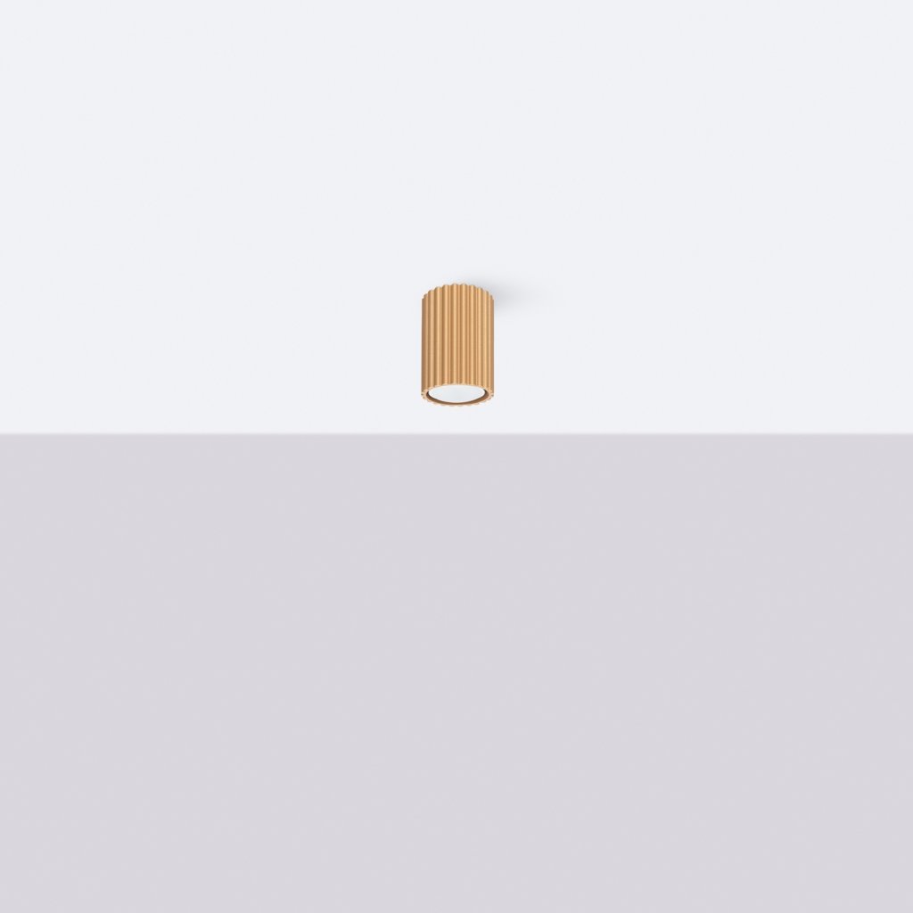 Stropní svítidlo KARBON s jedním zlatým kovovým stínidlem o délce 10 cm je ideální volbou pro milovníky moderního minimalismu. Její jednoduchý tvar s jemně žebrovaným povrchem působí elegantně a dodává prostoru jemný luxusní nádech. Zlatý povrch svítidla vnáší do interiéru teplo a sofistikovanost a vytváří příjemnou atmosféru v každé místnosti.