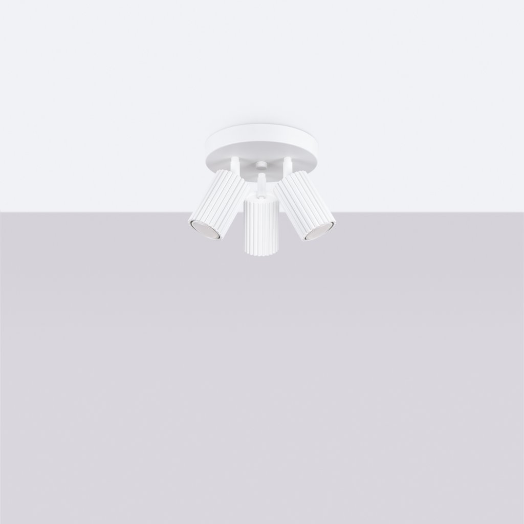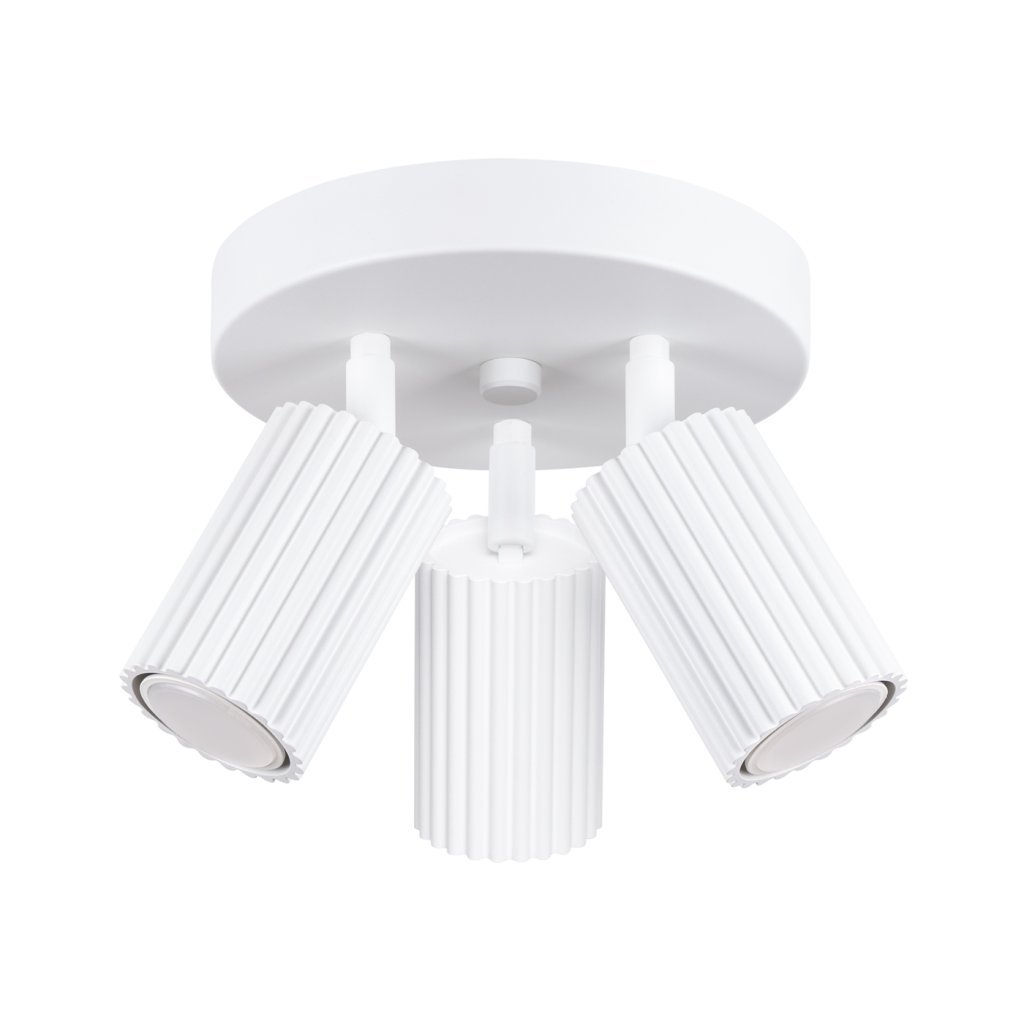 Stropní svítidlo KARBON s třemi bílými kovovými stínidly je ideálním řešením pro ty, kteří hledají moderní a funkční osvětlení s čistým designem. Kombinace matné bílé barvy a jemně žebrované textury vytváří elegantní a nadčasový vzhled, který se hodí do každého interiéru od minimalistických po klasické prostory.