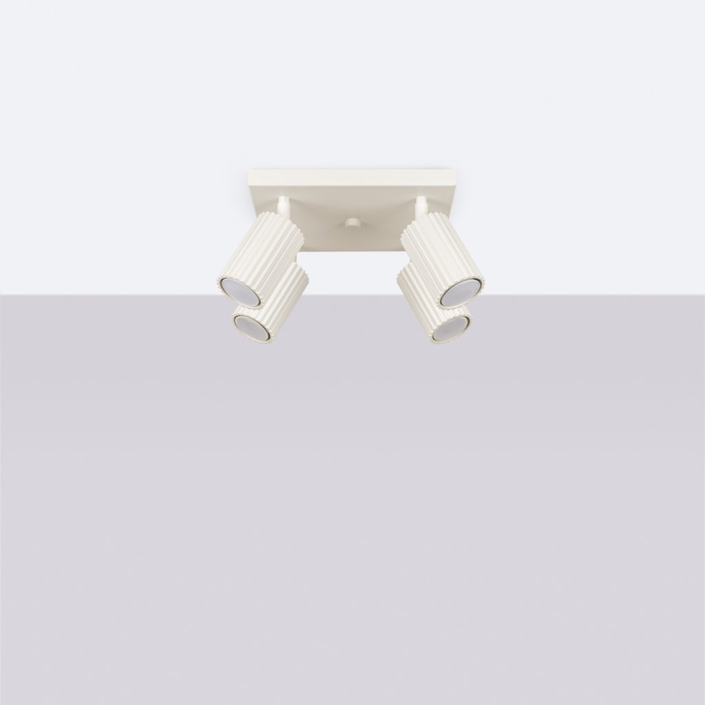 Stropní svítidlo KARBON se čtyřmi béžovými kovovými stínidly je harmonickou kombinací moderního designu a praktické funkčnosti. Jemně žebrovaný povrch a decentní béžová barva dodávají svítidlu elegantní vzhled, který se skvěle hodí do moderních, skandinávských a minimalistických interiérů.
