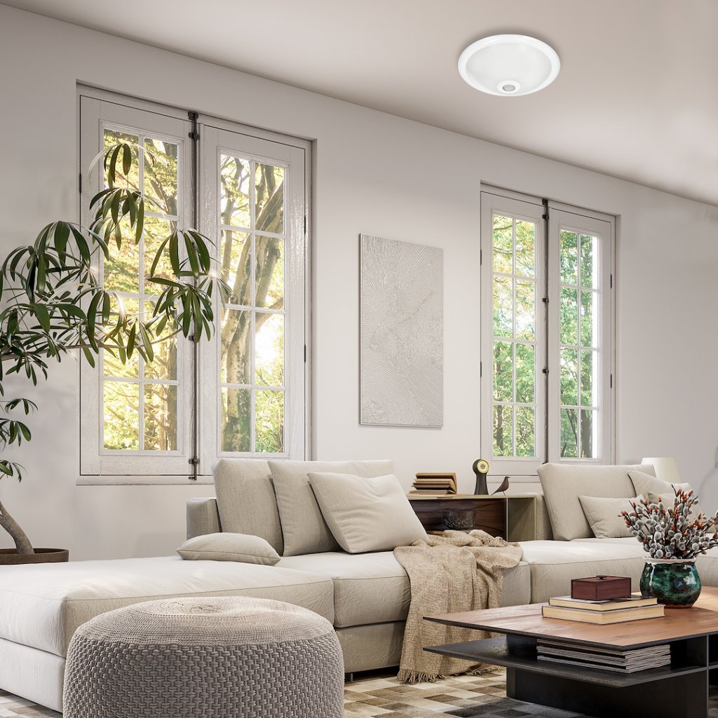 Stropní svítidlo Mario s bílým PVC stínítkem je praktickým řešením pro chodby, vstupní prostory, kanceláře, obchodní prostory i domácnosti, kde je důležité automatizované a energeticky úsporné osvětlení. Jeho matný difuzor účinně rozptyluje světlo a zároveň je odolný vůči mechanickému poškození (stupeň IK8) , což zaručuje jeho dlouhou životnost.