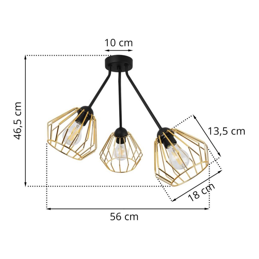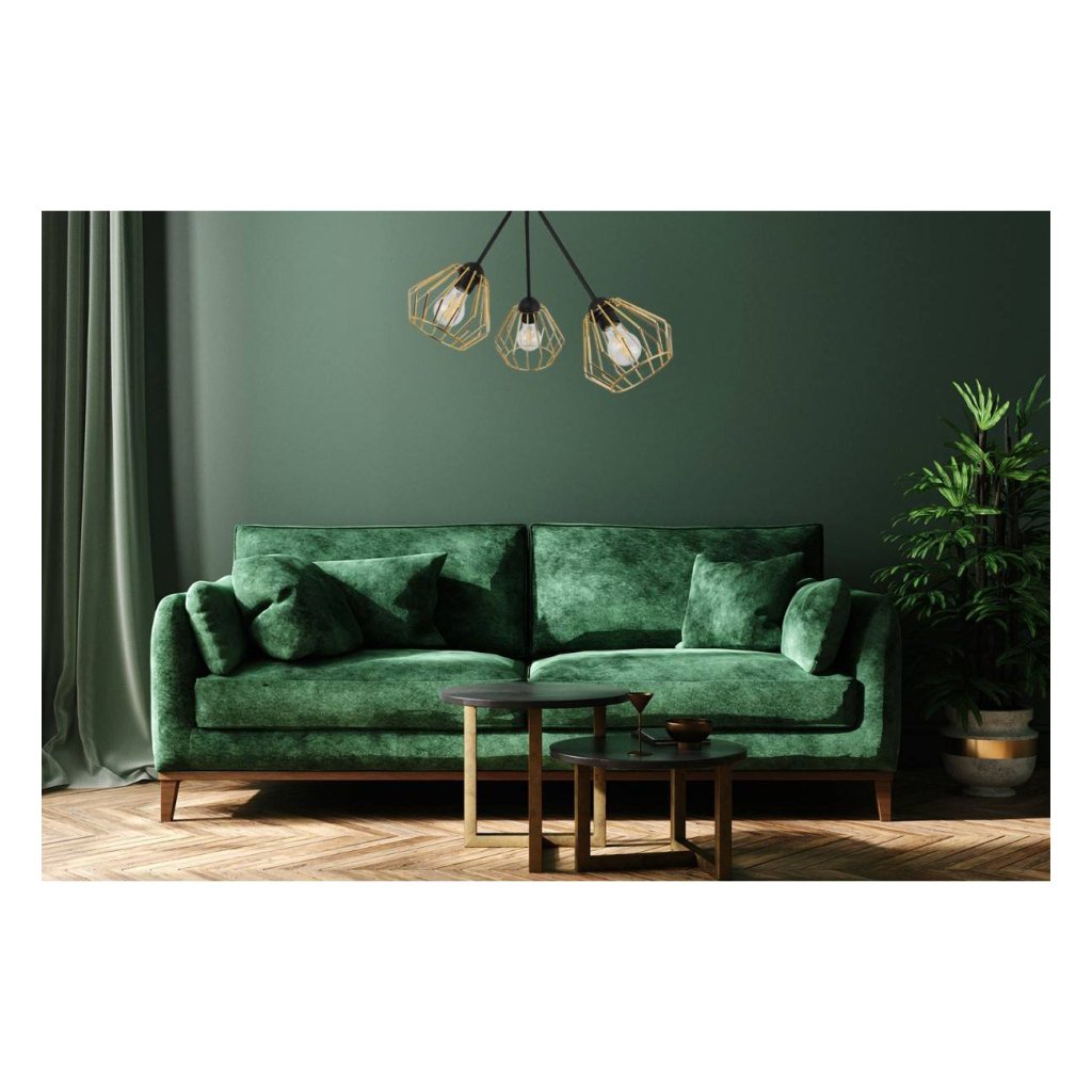 Stropní svítidlo Nuvola Trio, 3x zlaté drátěné stínidlo