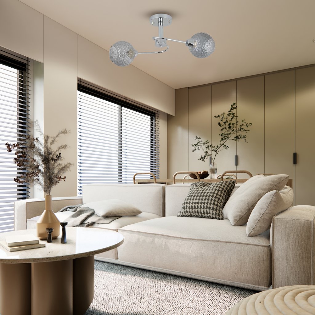 Stropní svítidlo Oakland se dvěma grafitovými skleněnými stínítky je dokonalým doplňkem do moderních interiérů , které kladou důraz na elegantní design a funkčnost . Kombinace kvalitního kovu s lesklou chromovou povrchovou úpravou a kouřového skla vytváří svítidlo s osobitým charakterem.