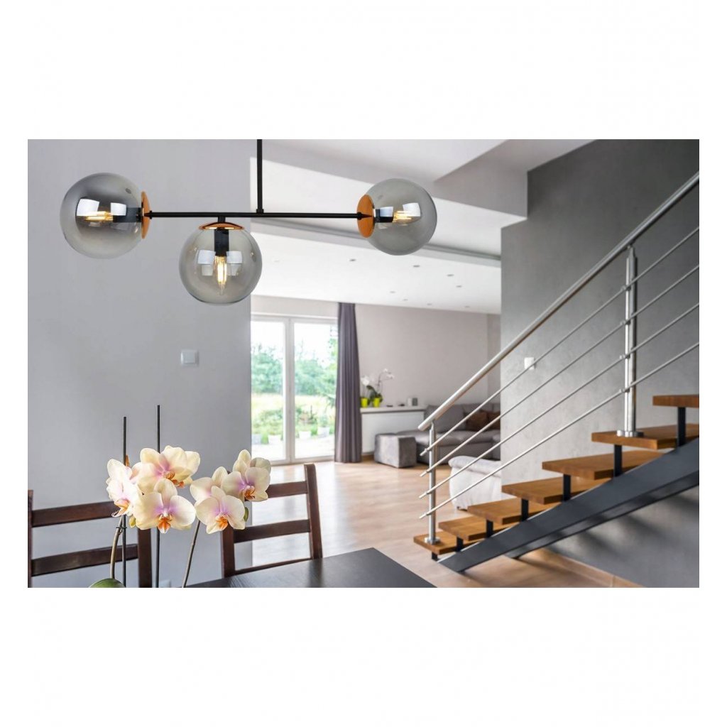 Stropní svítidlo Paris, 3x grafitové skleněné stínítko, (výběr ze 4 barev uchycení)