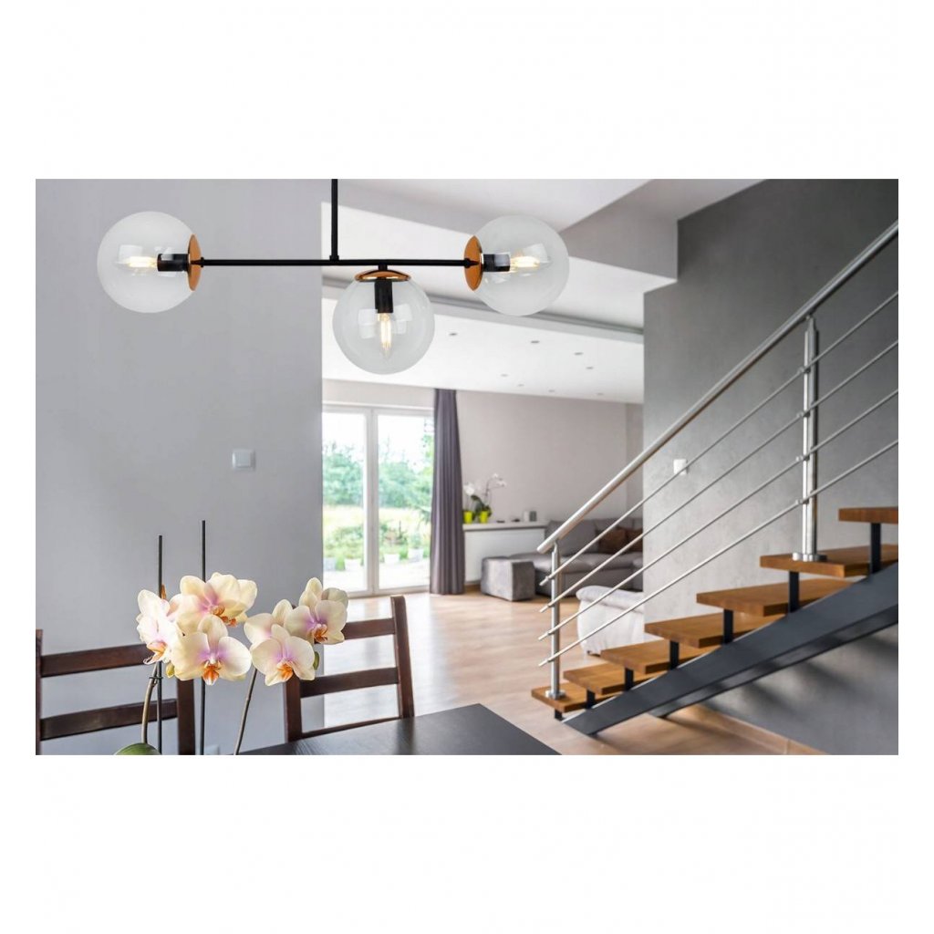 Stropní svítidlo PARIS, 3x transparentní skleněné stínítko, černá barva konstrukce
