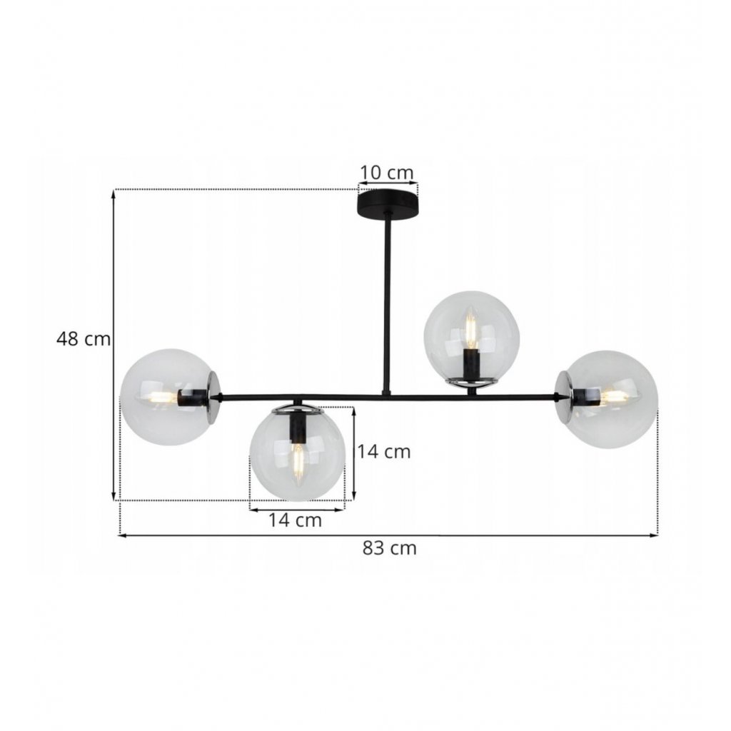 Stropní svítidlo Paris, 4x transparentní skleněné stínítko, (výběr ze 4 barev uchycení)