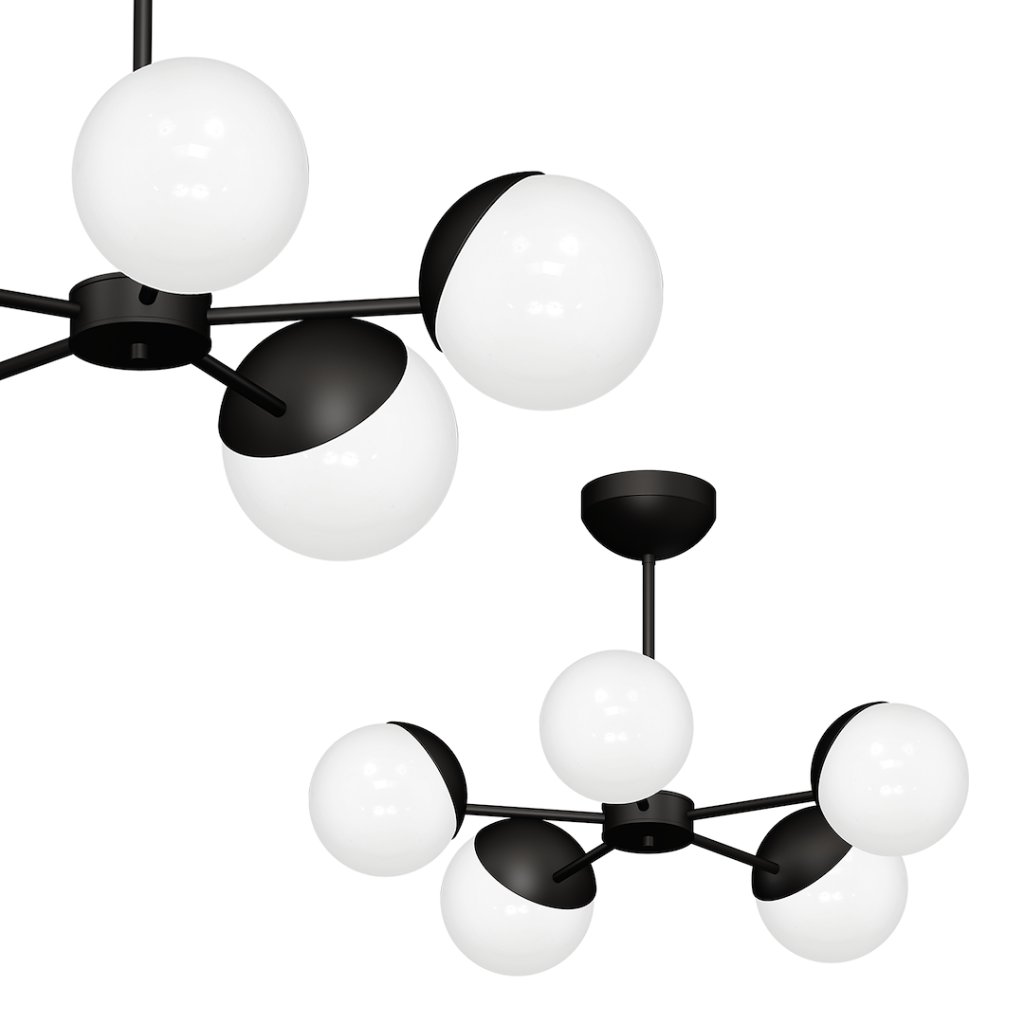 Bílá kovová konstrukce působí svěže a moderně, přičemž díky svému neutrálnímu vzhledu se snadno kombinuje s různými barevnými a materiálovými řešeními v interiéru. Tento model je ideální nad jídelní stůl, kuchyňský ostrov nebo do rozlehlejších částí obývacího pokoje, kde poskytne dostatek světla a zároveň estetickou hodnotu .