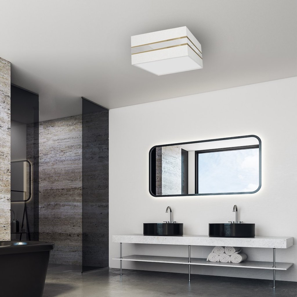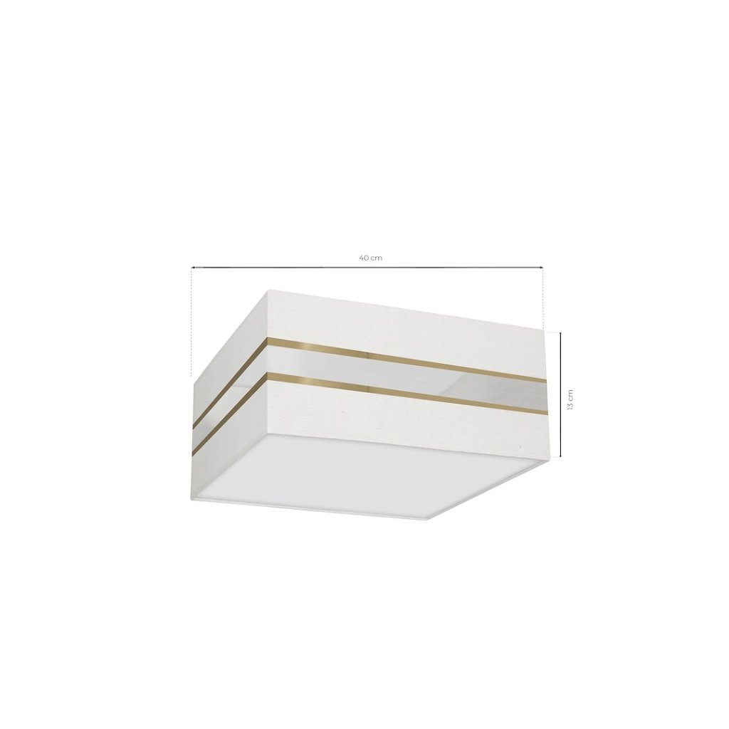 Elegantní stropní svítidlo ze série ULTIMO ve čtvercovém provedení kombinuje bílé textilní stínítko se zlatými akcenty a bílým plexisklem. Díky nadčasovému designu se svítidlo hodí do moderních i klasicky zařízených interiérů.